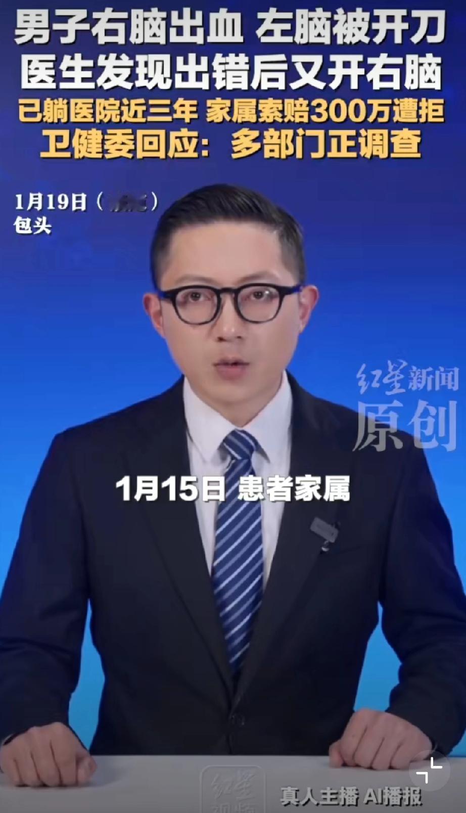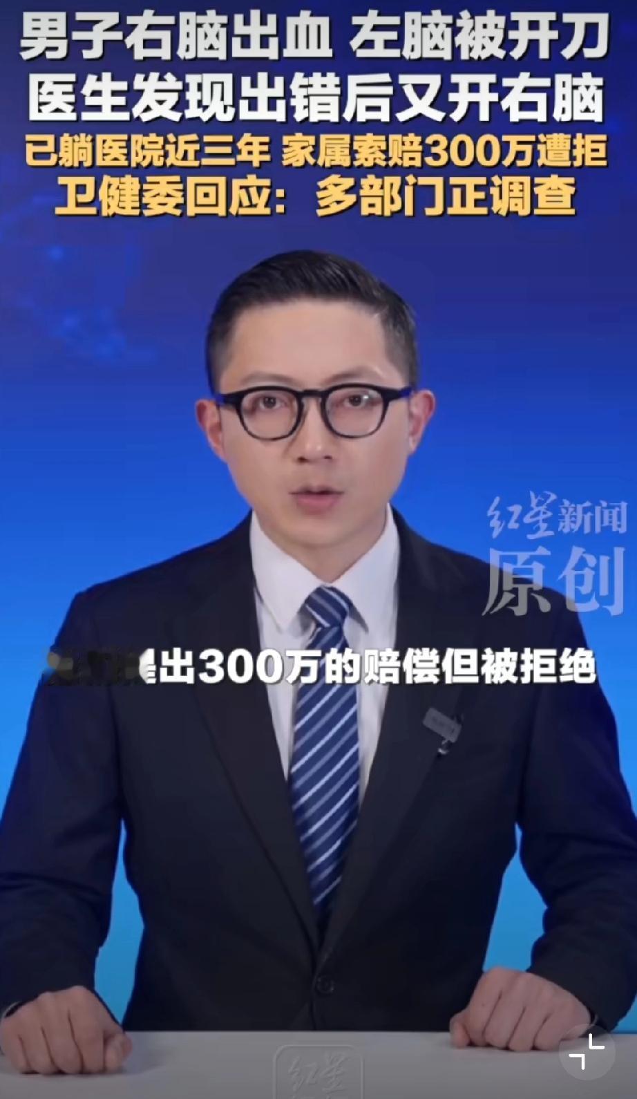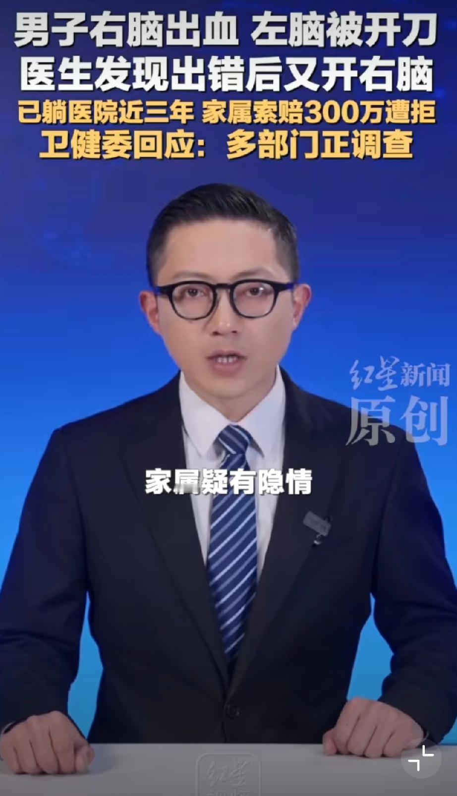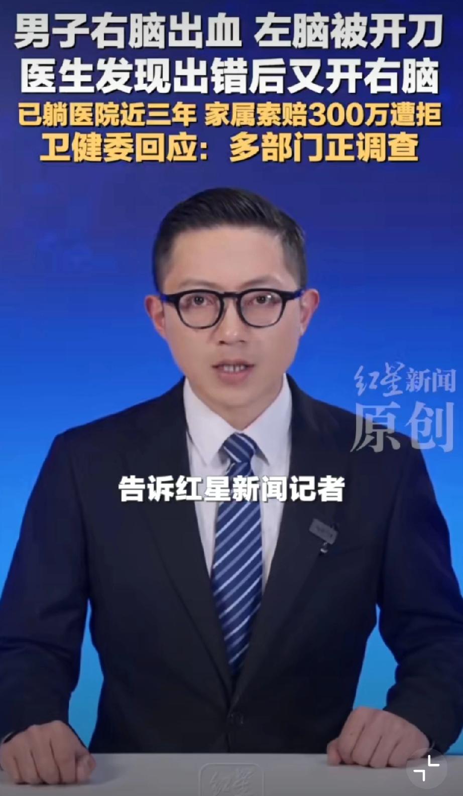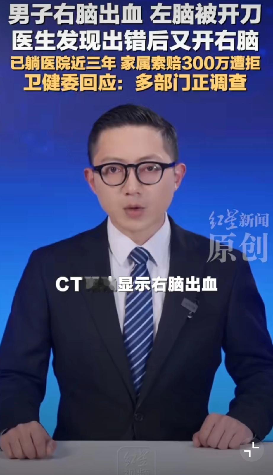 男子右脑出血被医生错开左脑[恐惧]这操作真的离谱到家!王先生右脑出血,包头市中心医院竟错开左脑,术后卧床三年至今没好转。医院承认失误却停了护工费,家属索赔还被拒,这也太不负责任了!希望卫健委严查到底,追究责任、足额赔偿,给患者和家属一个公道! 包头身边事 荒唐事件分享