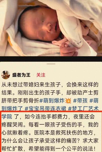 “彻底解释不清!”江苏,盛先生正沉浸在喜得贵子的幸福中,不料助产士上前剪脐带时,竟“咔嚓”一剪刀,把刚出生婴儿的手指头给剪断了!看着哇哇大哭的儿子,盛先生气得浑身发抖。医院给出神一般的解释。 盛先生站在产房外的走廊里,来回踱步,脚步轻得几乎听不见。那一刻,他的世界只剩下一个念头——母子平安。 走廊尽头的灯亮着,空气里弥漫着消毒水的味道,却怎么也压不住他心里的激动。 他已经无数次在脑海里描绘过这个画面:护士推着婴儿出来,红彤彤的小脸,皱巴巴的,却是他这辈子见过最漂亮的模样。 一声清亮的啼哭从产房里传出来,盛先生猛地抬头,眼眶一下子就红了。生了,是个男孩。那一刻,他甚至忘了自己姓什么,只觉得胸腔被幸福填得满满当当,连呼吸都带着颤。 可幸福,只持续了短短几分钟。 产房里,助产士正准备给孩子剪脐带。谁也没想到,下一秒,一声刺耳的“咔嚓”声,像刀子一样,生生扎进了所有人的耳朵里。紧接着,是比刚才更尖锐、更撕心裂肺的哭声。 “不对劲……”盛先生还没来得及反应,就看见医护人员的神情瞬间变了,有人低声喊了一句:“快,止血!” 等他被允许靠近时,眼前的画面几乎让他站不住脚——刚出生的儿子,小小的手掌上,鲜血顺着指缝往外渗,左手中指被齐齐剪断了一截。 那一刻,盛先生只觉得脑袋“嗡”的一声,整个世界都塌了。 “这是什么意思?这是怎么回事?”他失声吼了出来,声音因为恐惧和愤怒而变调。 没人敢正眼看他。孩子还没来得及喝上一口奶,甚至连妈妈的脸都没看清,就被匆匆推上了转运车。止血、包扎、联系上级医院,一切都在飞快进行,却快不过盛先生心里的崩塌。 第一次转院,第二次转院。警笛声、担架轮子的摩擦声,在盛先生耳边一遍遍回响。他跟着车跑,手心全是汗,腿软得几乎站不稳。 那不是普通的疼,那是一个父亲眼睁睁看着孩子受难,却什么都做不了的无力。 最终,孩子被紧急送进了无锡市第九人民医院。 诊断结果很快出来——“左中指单指不全切断”。医生的话冷静而克制,却像一把钝刀,一下下割在盛先生心上。孩子太小,血管细得像头发丝,手术难度极大。好在,经过抢救,血管暂时接通了。 “只是暂时。”医生叹了口气,“后期的上皮组织、神经系统恢复,会是一个非常漫长的过程,功能能恢复到什么程度,现在谁也不敢保证。也有可能,留下后遗症。” 盛先生坐在走廊的塑料椅上,双手死死抱着头,指甲几乎嵌进头皮里。 隔着玻璃,他看见保温箱里的儿子,浑身插着管子,哭得小脸通红,却连拳头都攥不紧。那一瞬间,他的眼泪再也忍不住,顺着脸颊往下掉。 “他才刚出生啊……”盛先生哽咽着,一句话怎么也说不完整。 更让他无法接受的,是医院给出的解释。 助产士低着头,说得轻描淡写:“剪脐带的时候,孩子的手突然乱动,这才不小心误伤了。” 这一句话,彻底点燃了盛先生的怒火。 “乱动?”他猛地站起来,浑身发抖,声音几乎是吼出来的,“他是刚出生的婴儿!你们是专业的医护人员!剪脐带之前,难道不知道要固定好孩子的手吗?这是一句‘乱动’就能解释的吗?” 对方沉默。医院的解释在他听来,近乎荒谬,甚至带着冷漠的推卸。 那一刻,盛先生第一次真切地感受到,从天堂坠入地狱,只需要一剪刀的距离。 他不是要什么“奇迹”,也不是不懂风险,但他无法接受这样的疏忽,被一句轻飘飘的理由带过。那根被剪断的,不只是孩子的一截手指,更是一个家庭原本完整的喜悦。