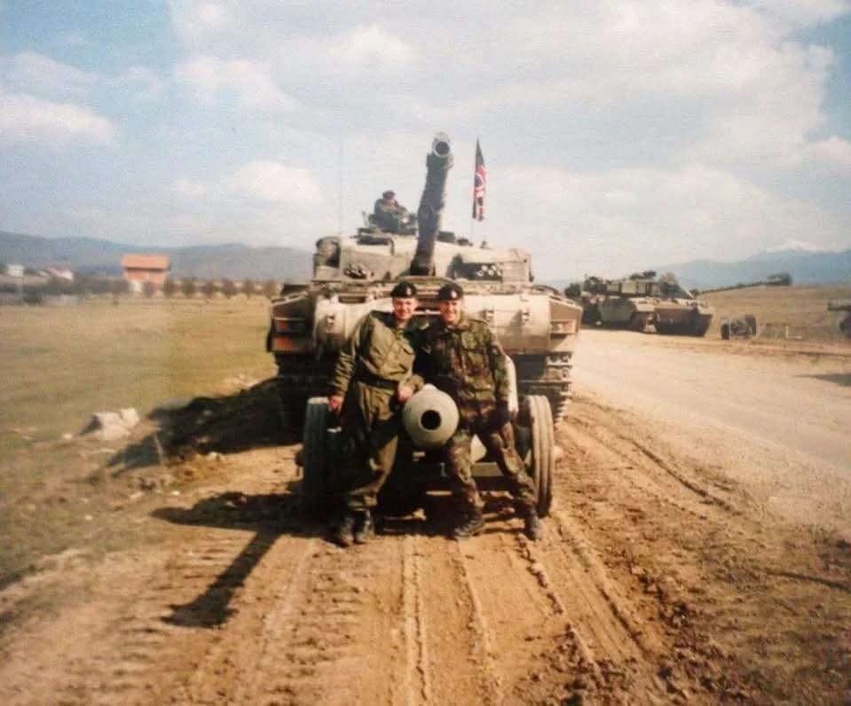 飞扬军事 1996年,在波黑德尔瓦尔,一辆英国挑战者1型坦克拖曳着一门缴获的Pak 40 75毫米反坦克炮。
