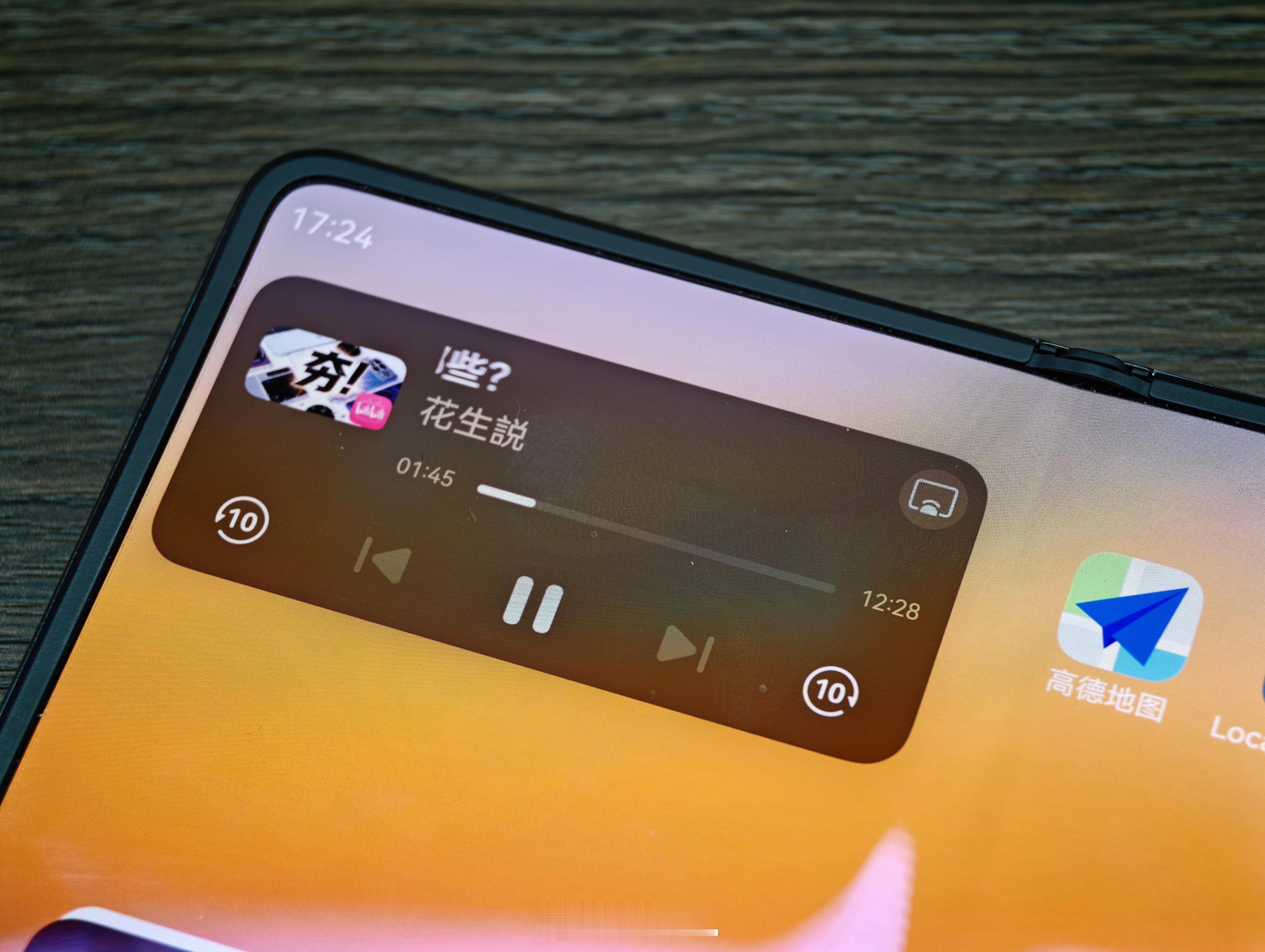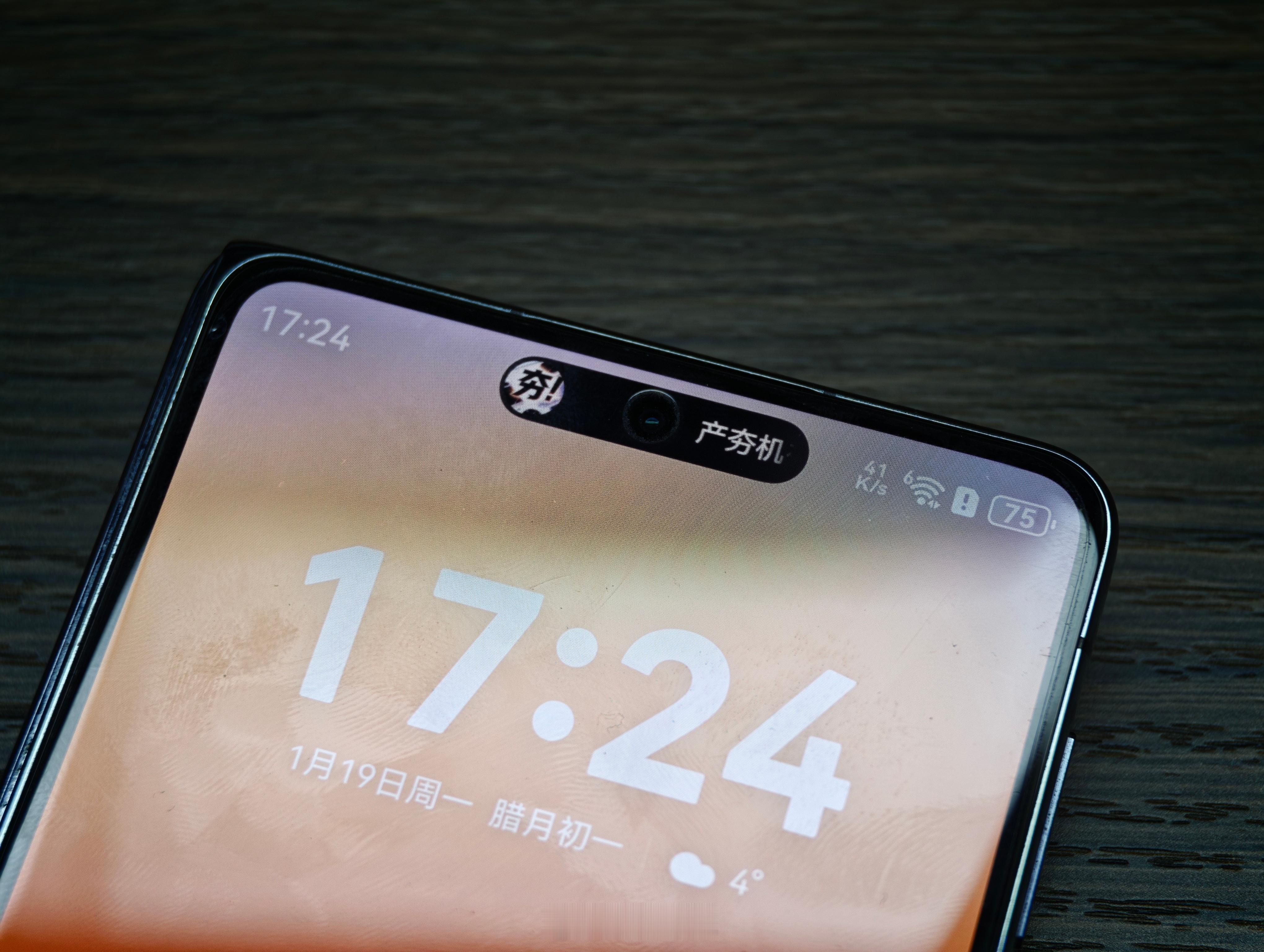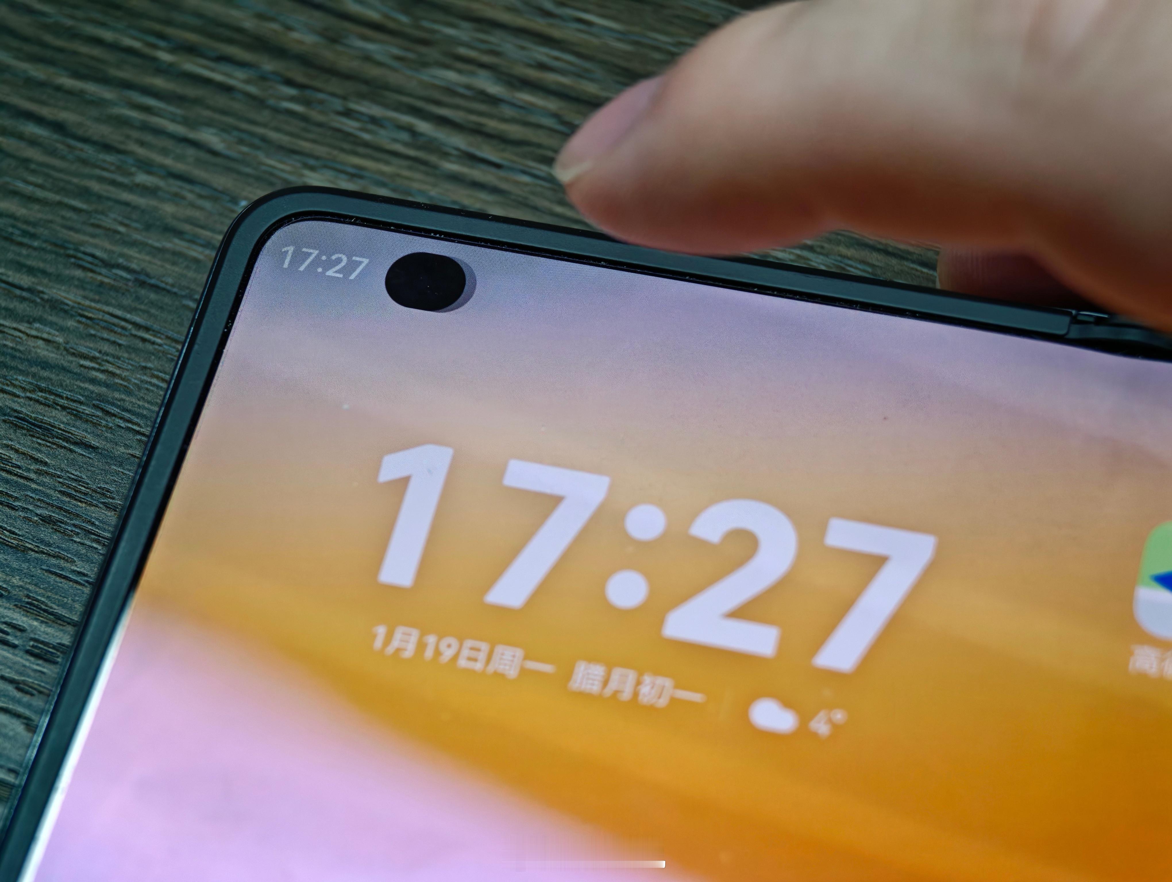 华为折叠屏内屏的挖孔在右上角,所以展开以后灵动岛会跑到状态栏左侧,时间的右边,而且点击依然有缩小成小黑点,再展开的窗口动画我现在想的是万一iPhone真把摄像头放左上角了,那灵动岛该怎么办