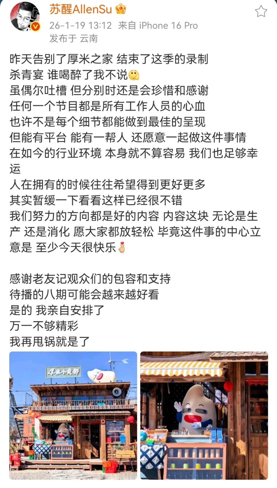 苏醒告别厚米之家 说再见是为了更好的再见!已经开始期待下一季的快乐老友记啦!!!说好谁都不许缺席快乐老友记3