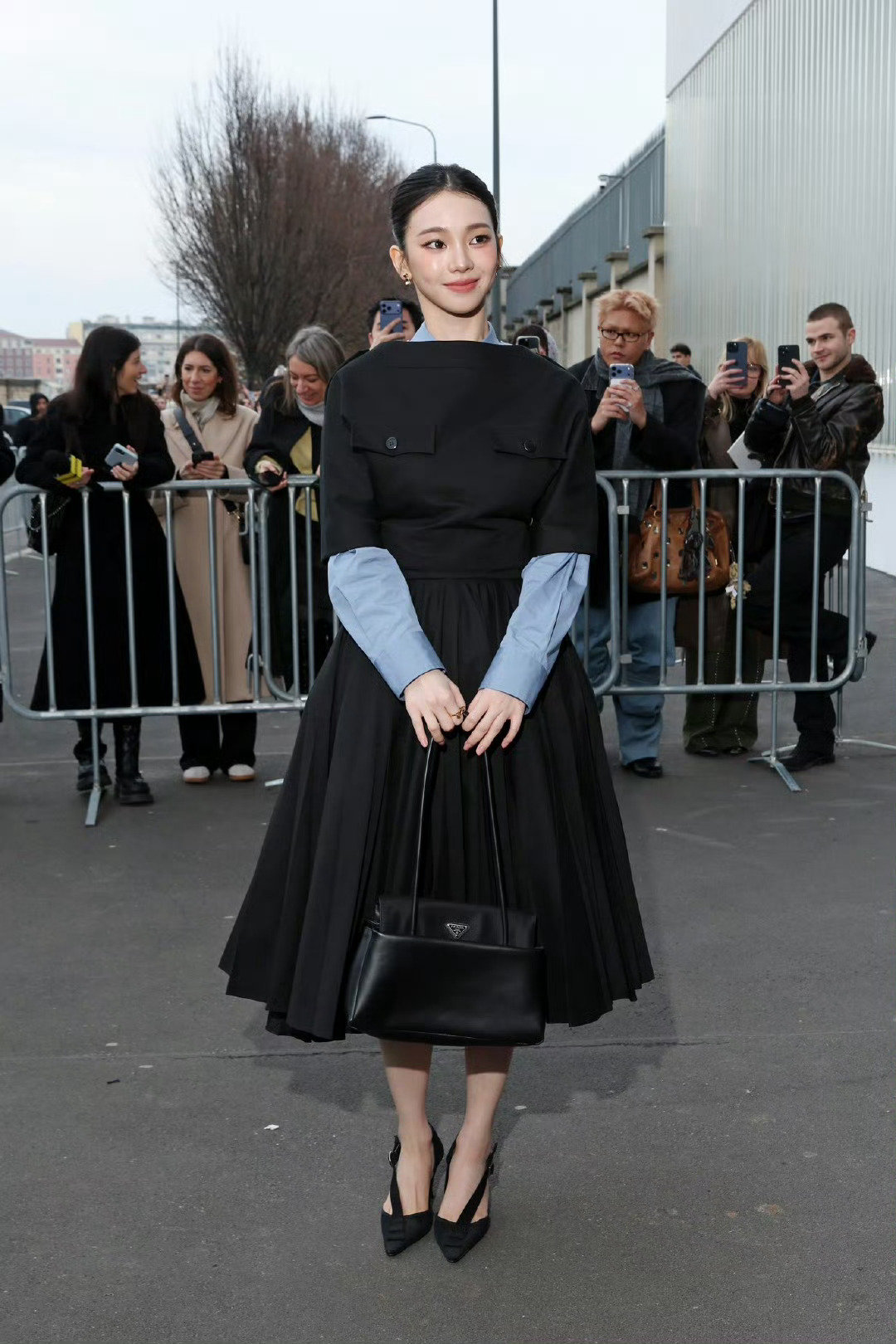柳智敏Prada米兰时装周看秀造型,好知性美