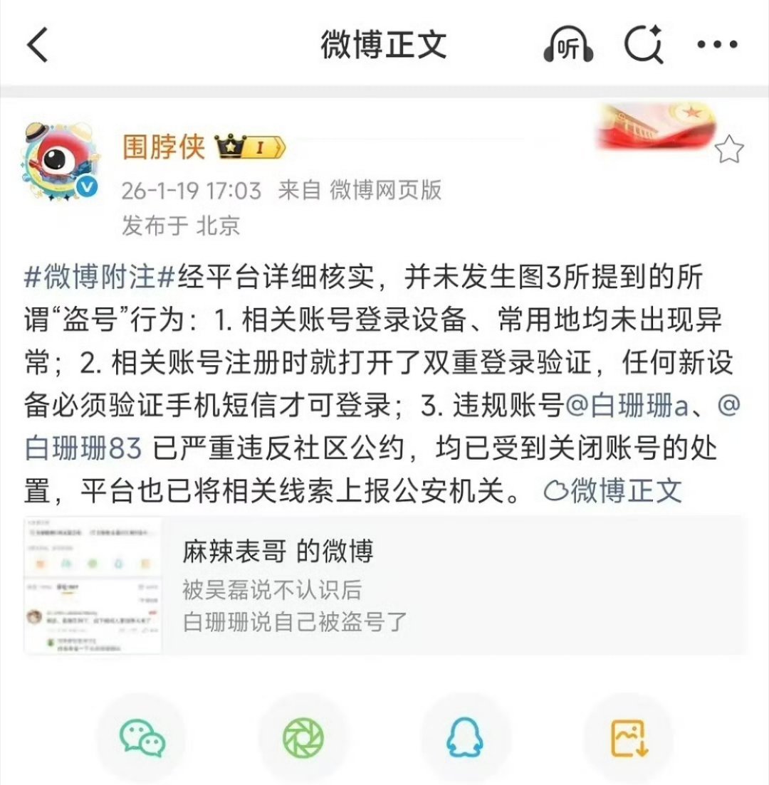 平台辟谣白珊珊被盗号笑死,还被盗号呢,平台核查结果啪啪打脸,所以那些话就是她自己