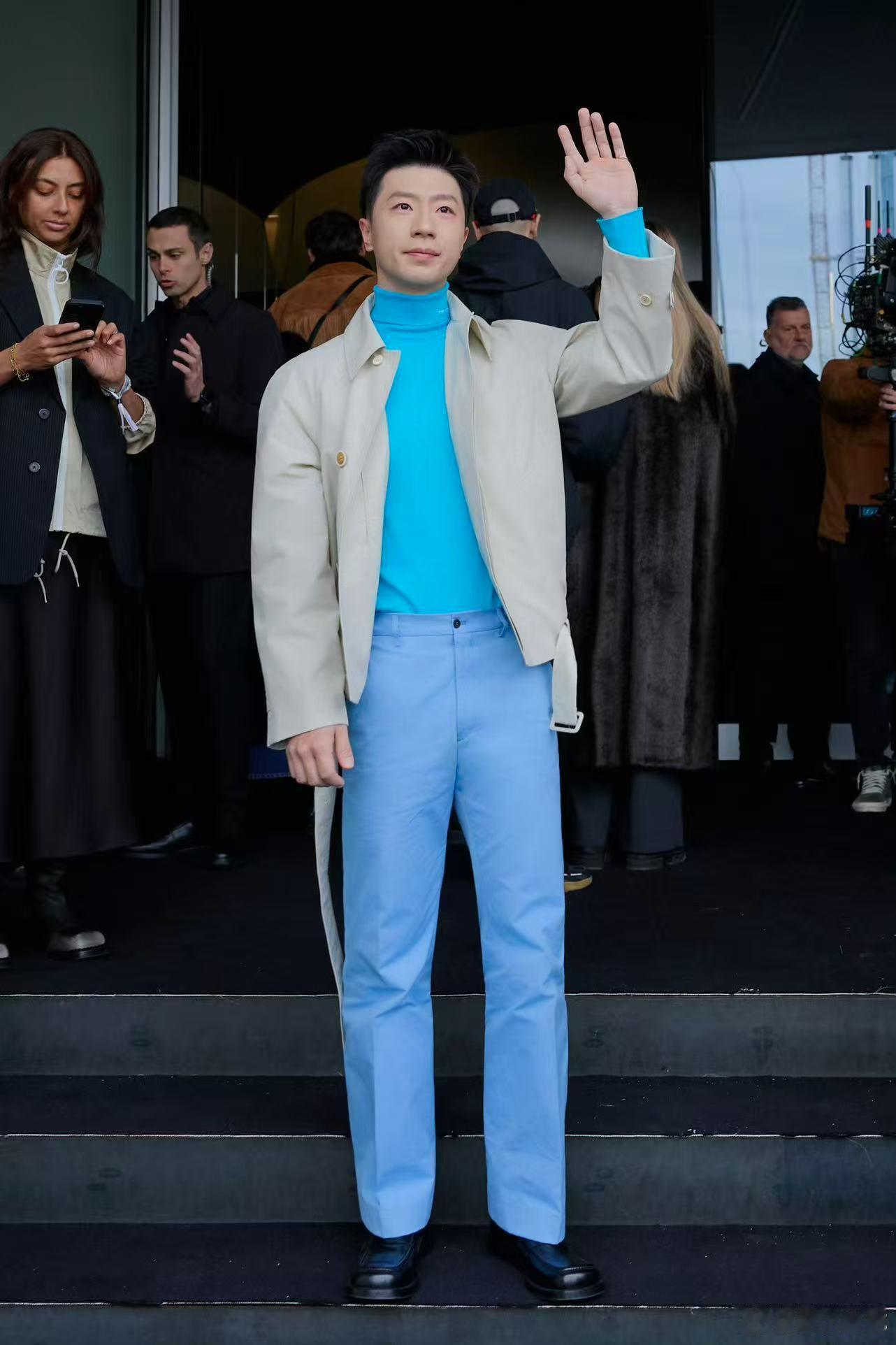 马龙和大家热情合照马龙的米兰造型已经够帅了,线下合照更显亲切,和粉丝贴贴的样子,