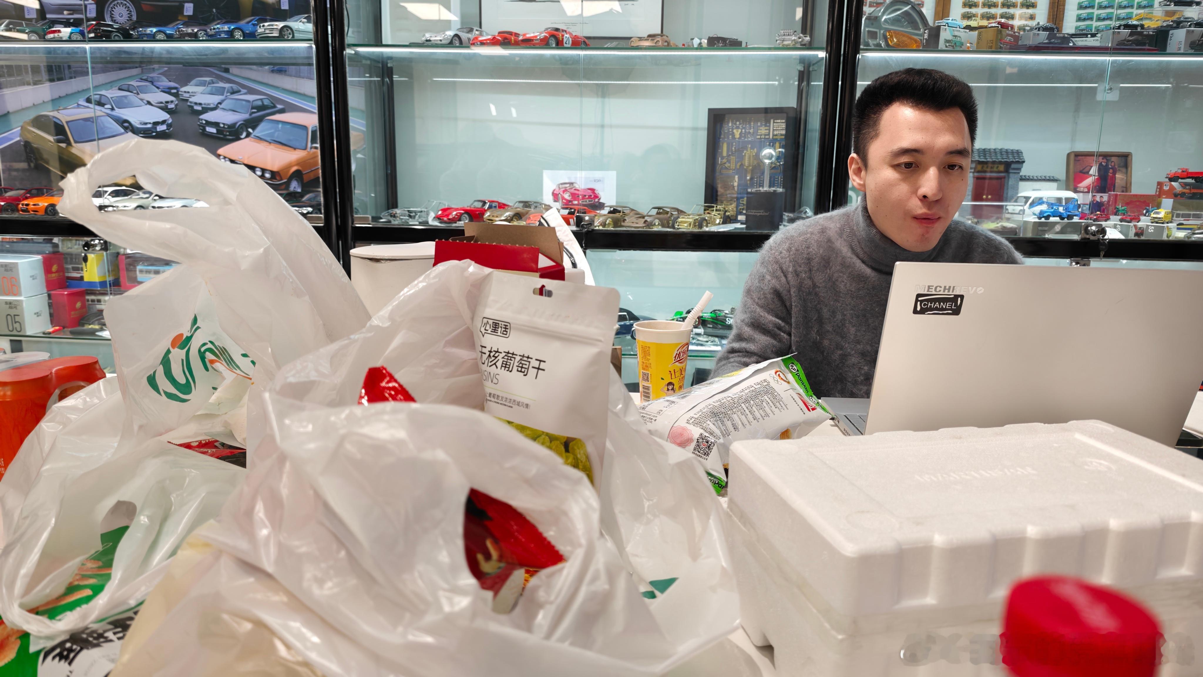 剪播客的氛围太轻松了,把我们都剪饿了,直接去超市买了一大堆零食,改茶话会了。