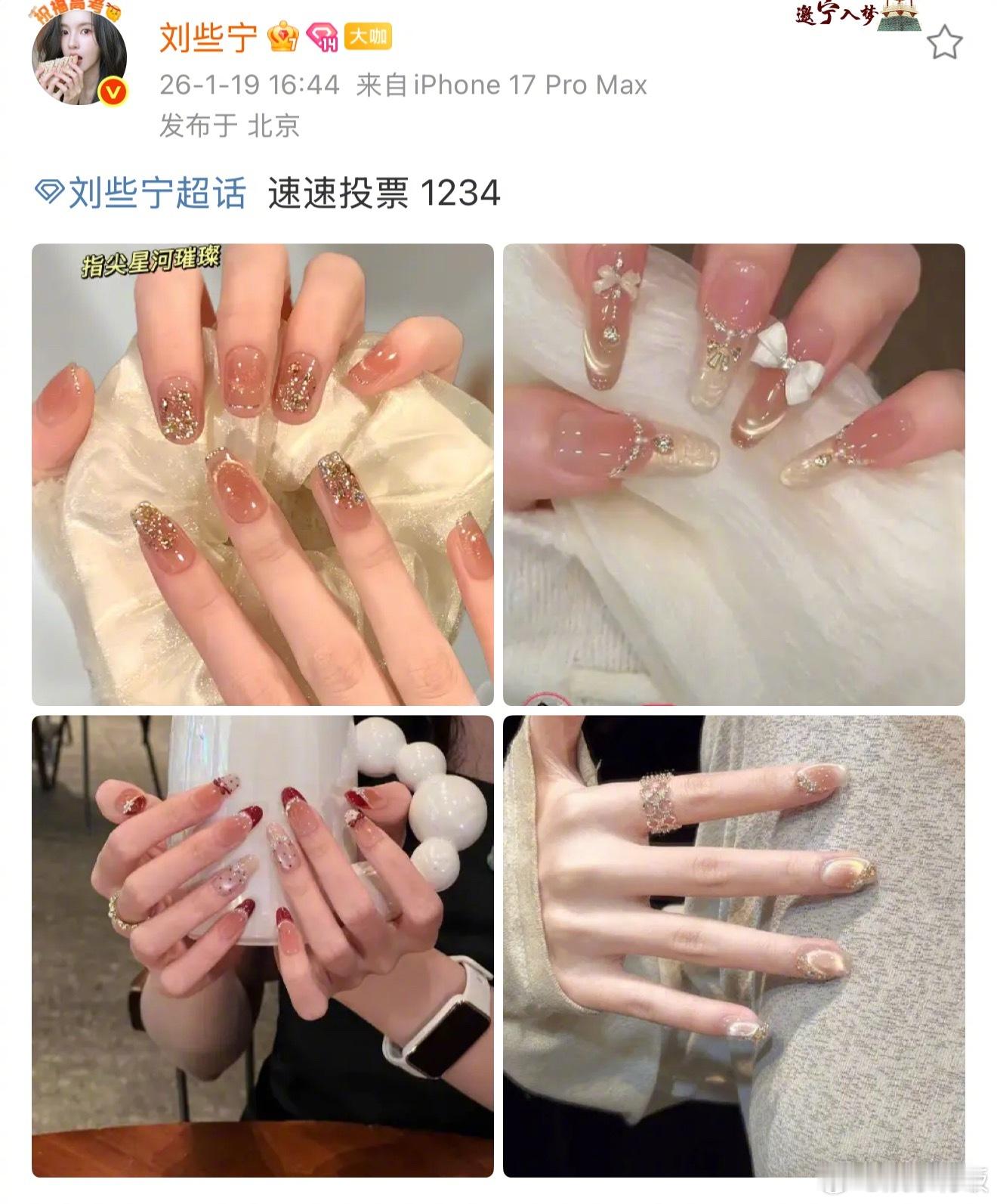 刘些宁为了秀美甲发了十八宫格刘些宁美甲的买家秀和卖家秀 一口气发了十八宫格,原来只为了秀最后一张美甲图哈哈哈,些宁好强的执行力,下午刚让粉丝选完现在就做好了,不过宝宝你怎么也遇到美甲的买家秀和卖家秀了刘些宁