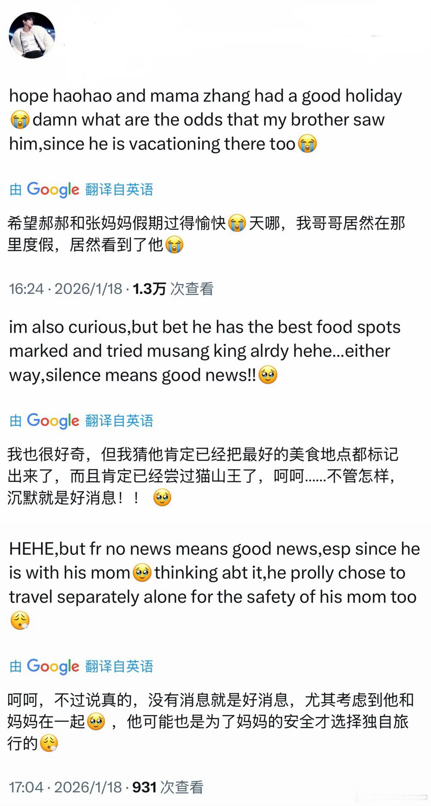 网友在马来西亚商场偶遇章昊和他妈妈逛街,一开始还没认出是章昊,休假愉快啊