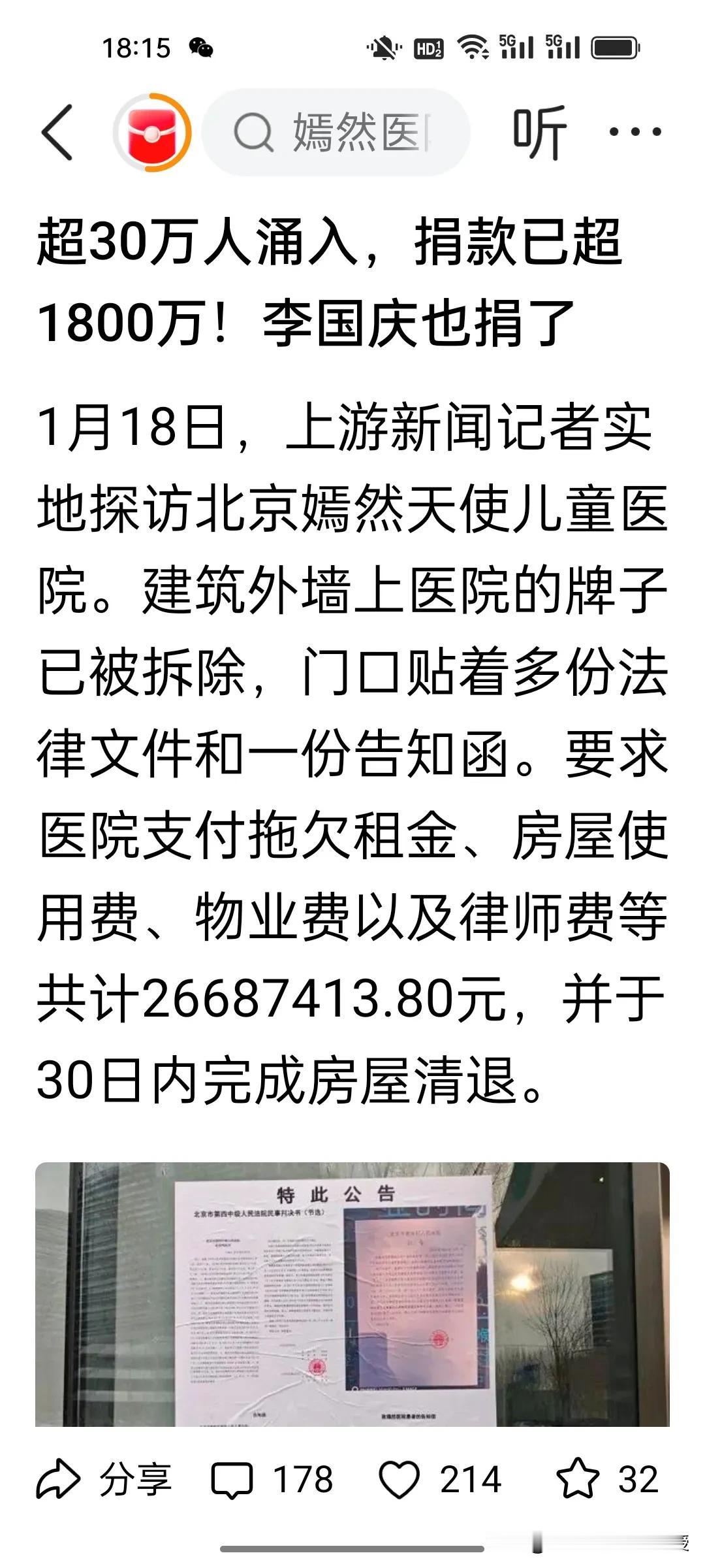 嫣然天使儿童医院不会搬到昆山了。刚刚看到《扬子晚报》记者采访了嫣然天使儿童医院的相关人员,说设立分院涉及主管部门审批,设备配置,团队筹建等,不是那么简单的搬迁,目前没有进一步的合作意向。 其实嫣然天使儿童医院最好的方案就是把欠款2600万付了,然后在北京重新找地方搬迁,这样不会有过大的损失,也不会影响正常的手术。 现在嫣然天使基金已经暂停接受款项,因为筹资额已经满了,但是爱心人士可以直接捐款到儿童医院,或者到儿童医院公众号购买公益周边商品的方式进行,也可以到医院住院部三楼的捐款箱去捐现金也可以。 现在这位香港的张房东已经派人把医院的招牌拆了,这么大的面积,未来还能不能招到租真不好说,现在周边的写字楼3元/平左右的太多了,与其空着也是损失,还不如继续支持公益,把价格降一降,李亚鹏现在直播带货已经做的风生水起,未来房租是肯定付得起的,他会是第二个罗永浩,通过直播带货还清所有债务,就看这个香港房东有没有远见了。