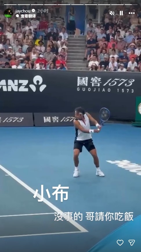 本场比赛,周杰伦现场观战。赛后,周杰伦更新社媒,安慰了输球的布云朝克特,周杰伦写道:小布,没事的,哥请你吃饭。