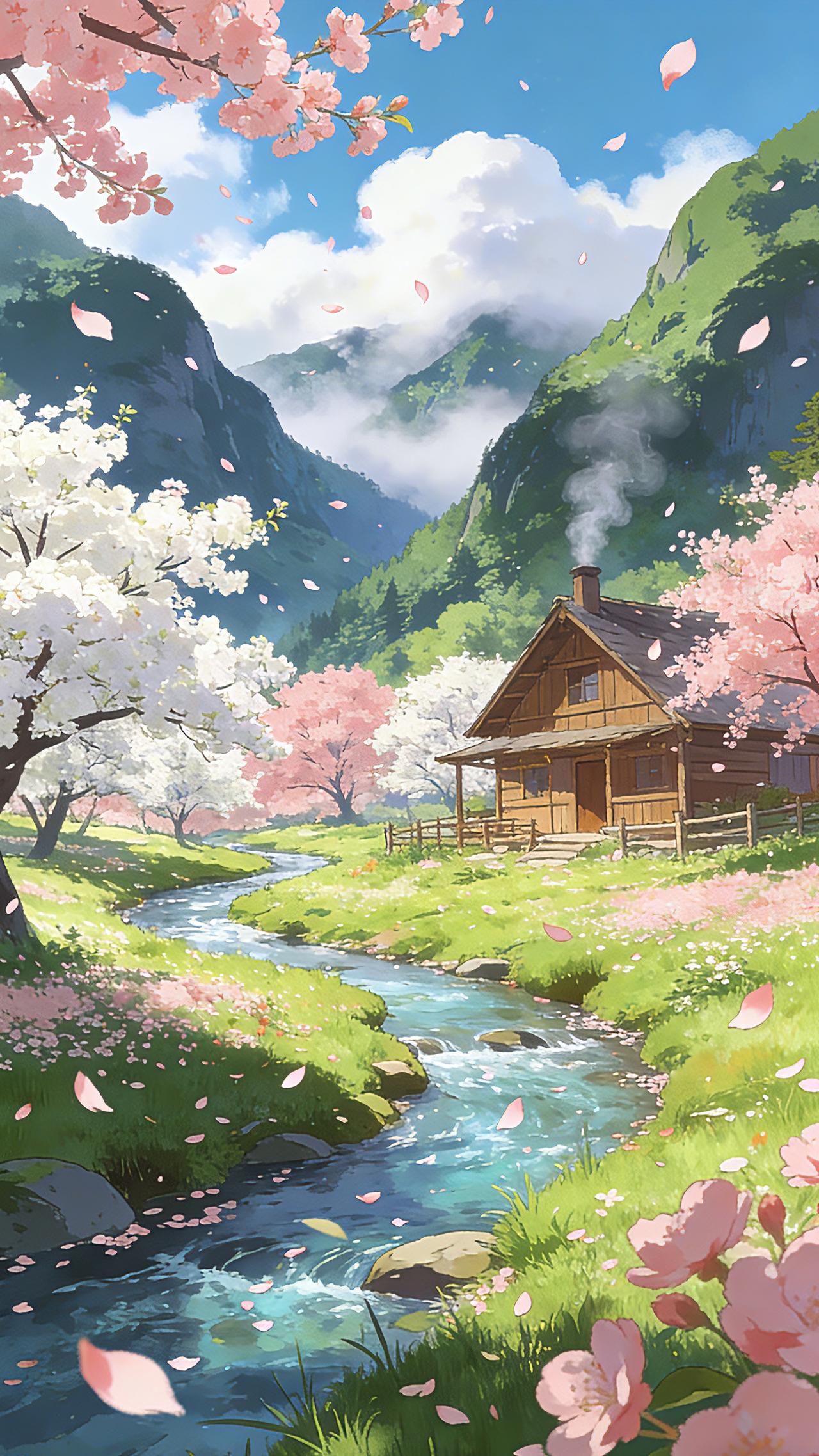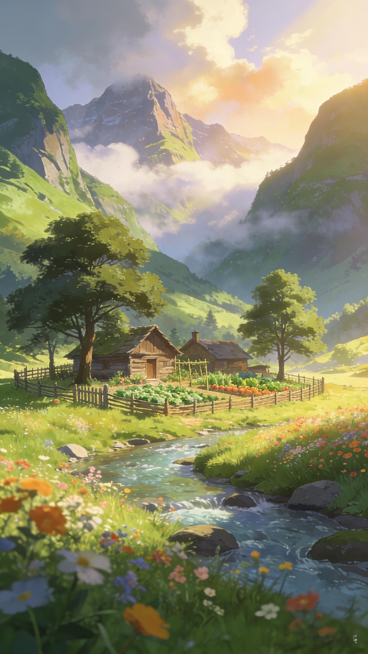 这组世外桃源壁纸以浓墨重彩勾勒出理想中的避世之境。青山如黛,云雾似纱,将山峦衬得愈发空灵缥缈;澄澈溪流穿林而过,水面倒映着岸边绚烂的野花与参天古木,色彩层次丰富而和谐。林间偶现的茅屋炊烟袅袅,与远处隐约的飞鸟相呼应,动静相宜间尽显田园诗意。整体色调明快而不失雅致,既保留了自然景观的原始生命力,又通过色彩的巧妙搭配营造出宁静致远的氛围,为观者提供了一方可暂时逃离喧嚣、安放心灵的视觉净土。