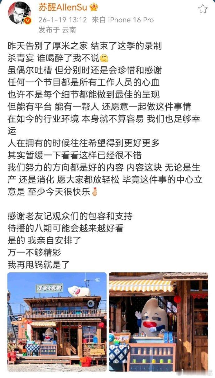 苏醒苏醒发文感谢老友记观众们的包容和支持谁懂啊!苏醒《快乐老友记》录制圆满结束,发文感谢观众包容与支持,真诚话语太戳人!苏醒告别厚米之家