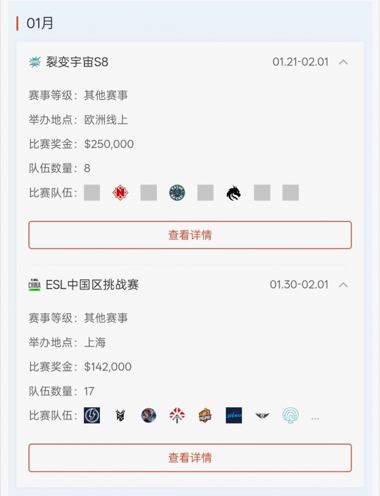 其中ESL中国区挑战赛参赛队伍有XG、Thriving、Refuser、YB.TT、VG、YB、GameMaster、RoarGaming八支战队。