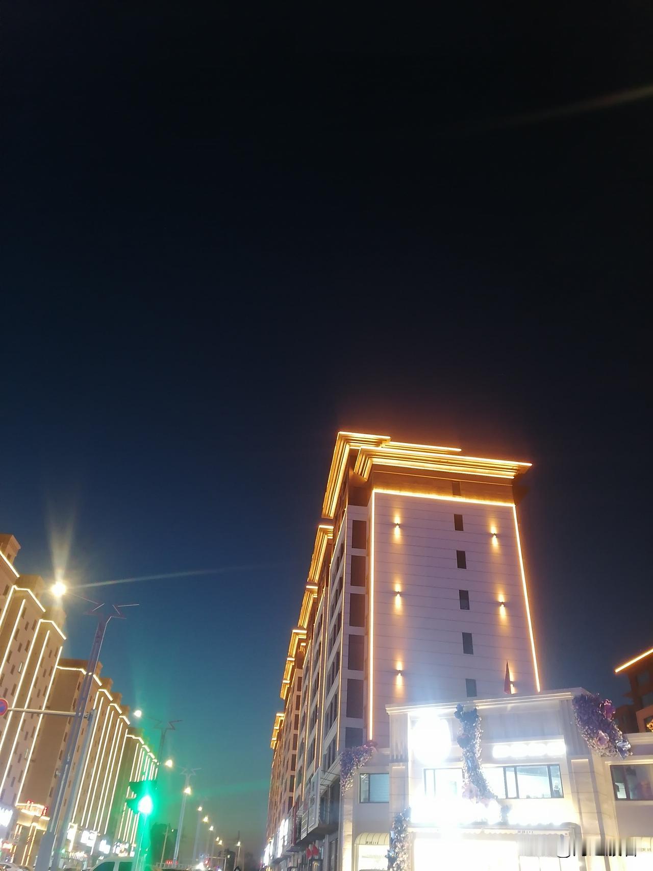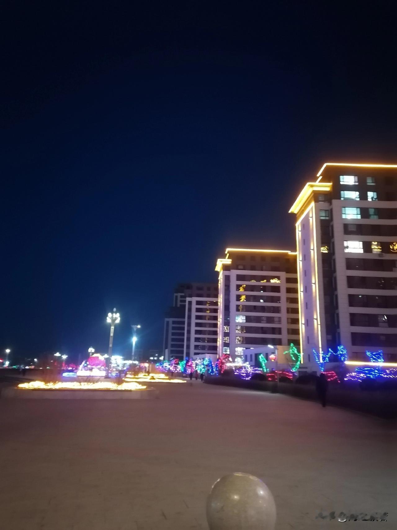 出门接姑娘,顺便看看家乡的夜景,快过年了,彩灯,灯笼都装饰起来,五彩斑斓的,十分