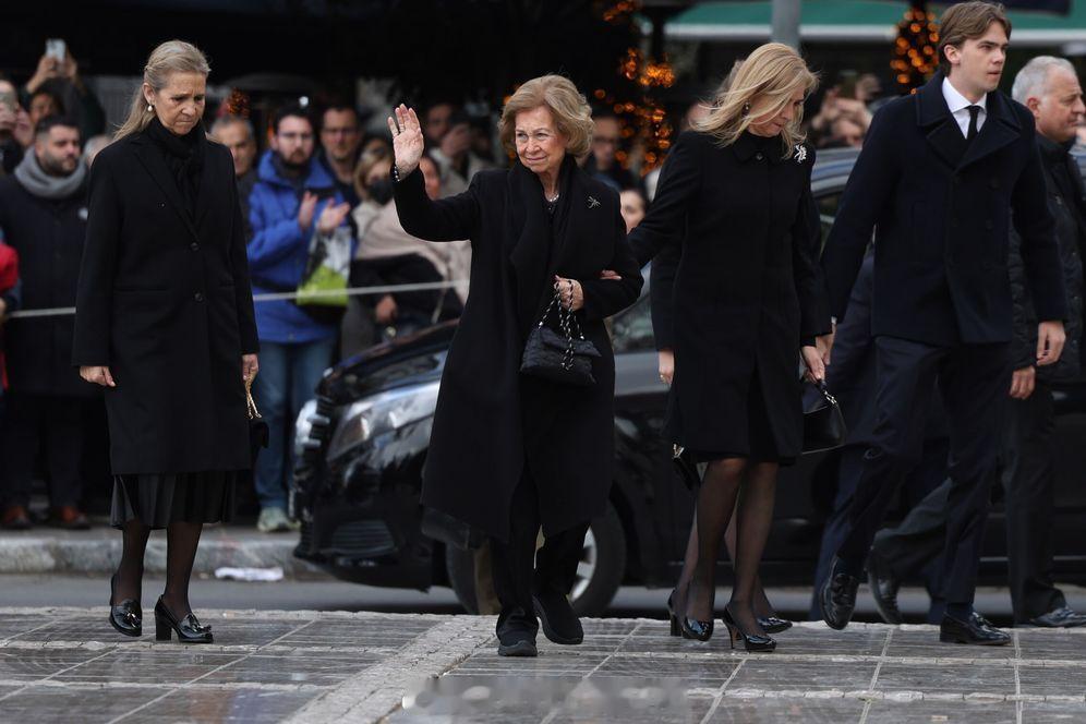 西班牙王室成员出席希腊艾琳公主葬礼补图,来的人和在马德里告别仪式相同,胡安和弗洛兰依旧缺席,维多利亚和巴勃罗掉队,没进外婆的大合照。内场不对记者开放,但看图莱后戴了祖传灰珍珠胸针(无吊坠版),诺拉和爸爸都戴了金羊毛,索菲亚没戴勋章,戴了她的梵克雅宝胸针(网页链接)。