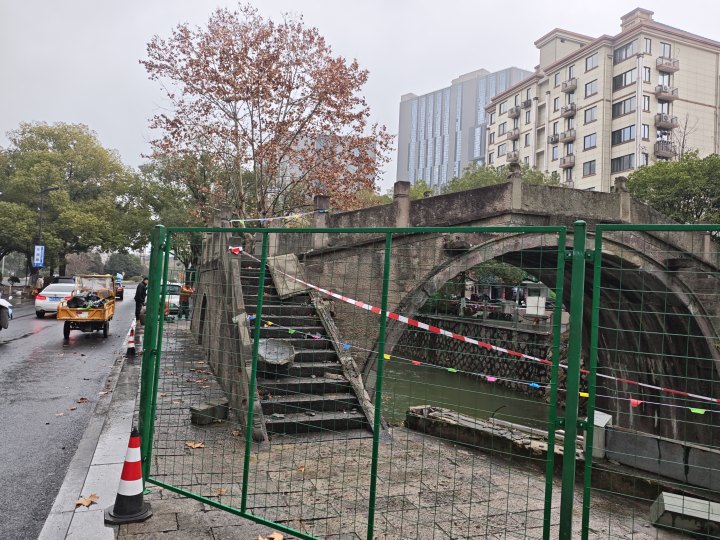 一名桥上的工作人员告诉记者,事故怎么发生的他也不清楚,桥下部分现在是临平街道城管在负责处置,桥上部分已通知文物保护单位紧急处理。