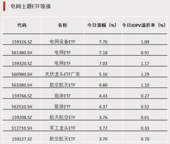 1月19日,A股电网板块涨幅居前,相关ETF表现强势,电网ETF(159320)大涨7.03%;多只港股医药主题ETF跌幅居前。