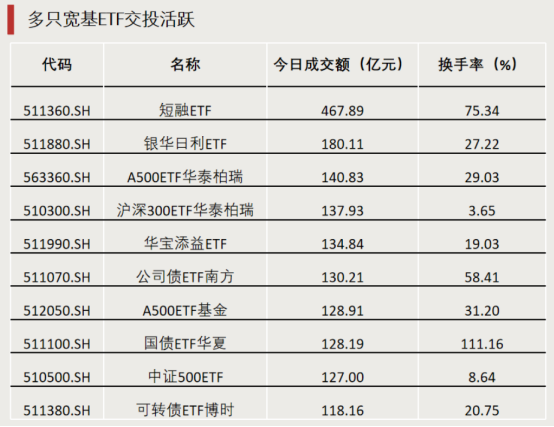 1月19日,A500ETF华泰柏瑞(563360)、沪深300ETF华泰柏瑞(510300)、A500ETF基金(512050)等多只宽基ETF交投活跃,成交额均超100亿元。