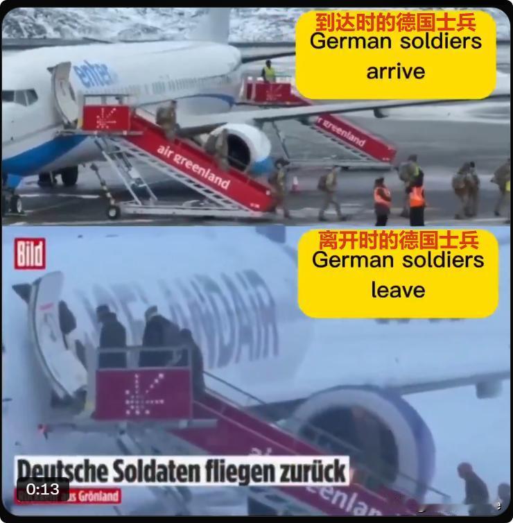 德国图片报消息,德军和法军刚落地,迎面就是10%关税的大逼兜抽脸上,直接给抽回去了。 在德国士兵为应对川普的威胁,前往格陵兰“展示存在感”不到44小时,便秘密撤离。他们在岛上停留不到44小时(从周五抵达到周日撤离),就在1月18日突然接到柏林的撤离命令。 这德国15名士兵,将搭乘民用航班离开前往丹麦的哥本哈根。 这一次撤退,明显法国逃跑稍慢了点,让德国抢了先。[偷笑][偷笑] 你知道法国派了多少士兵吗? 也是15名。 哈哈...