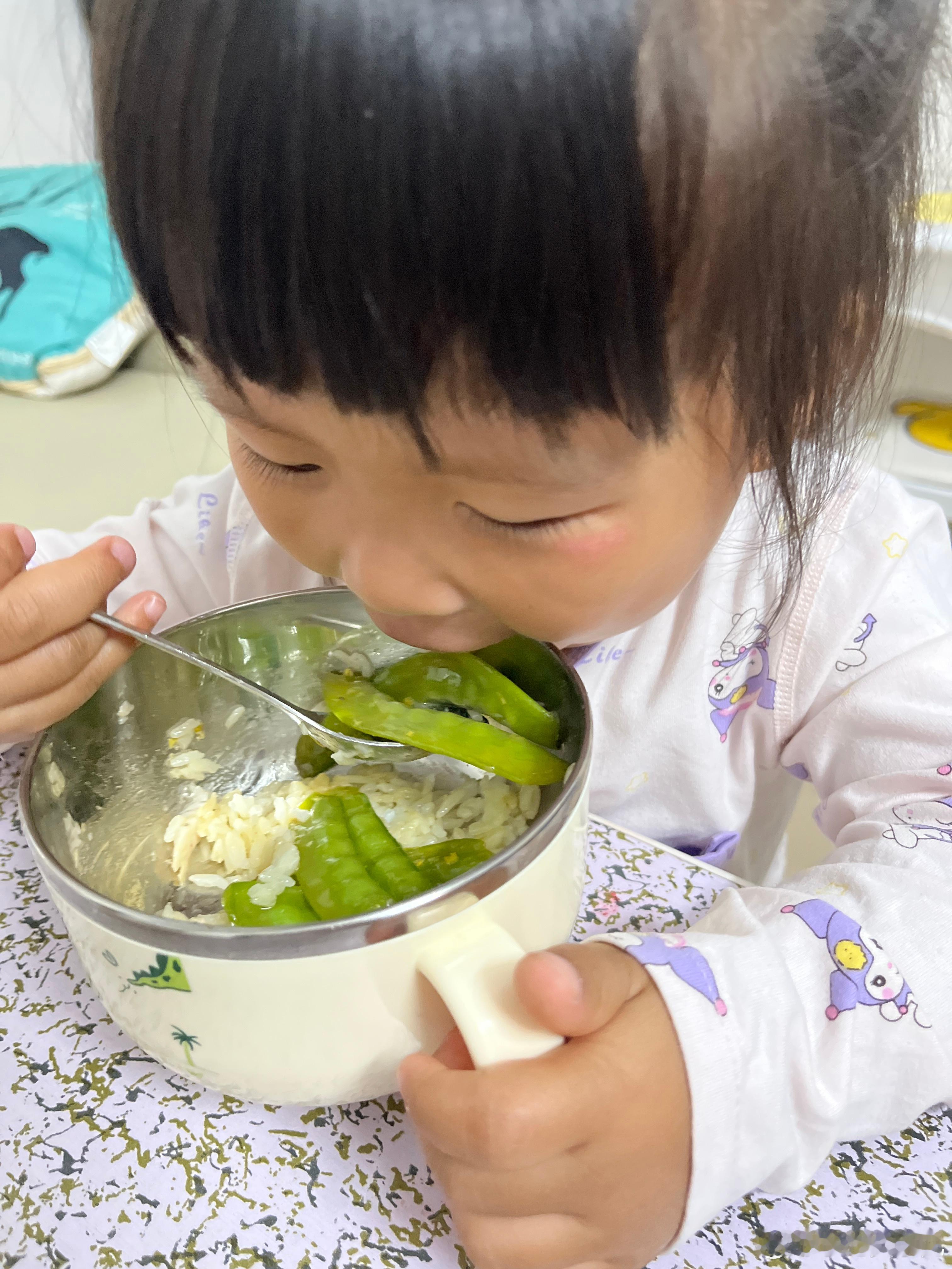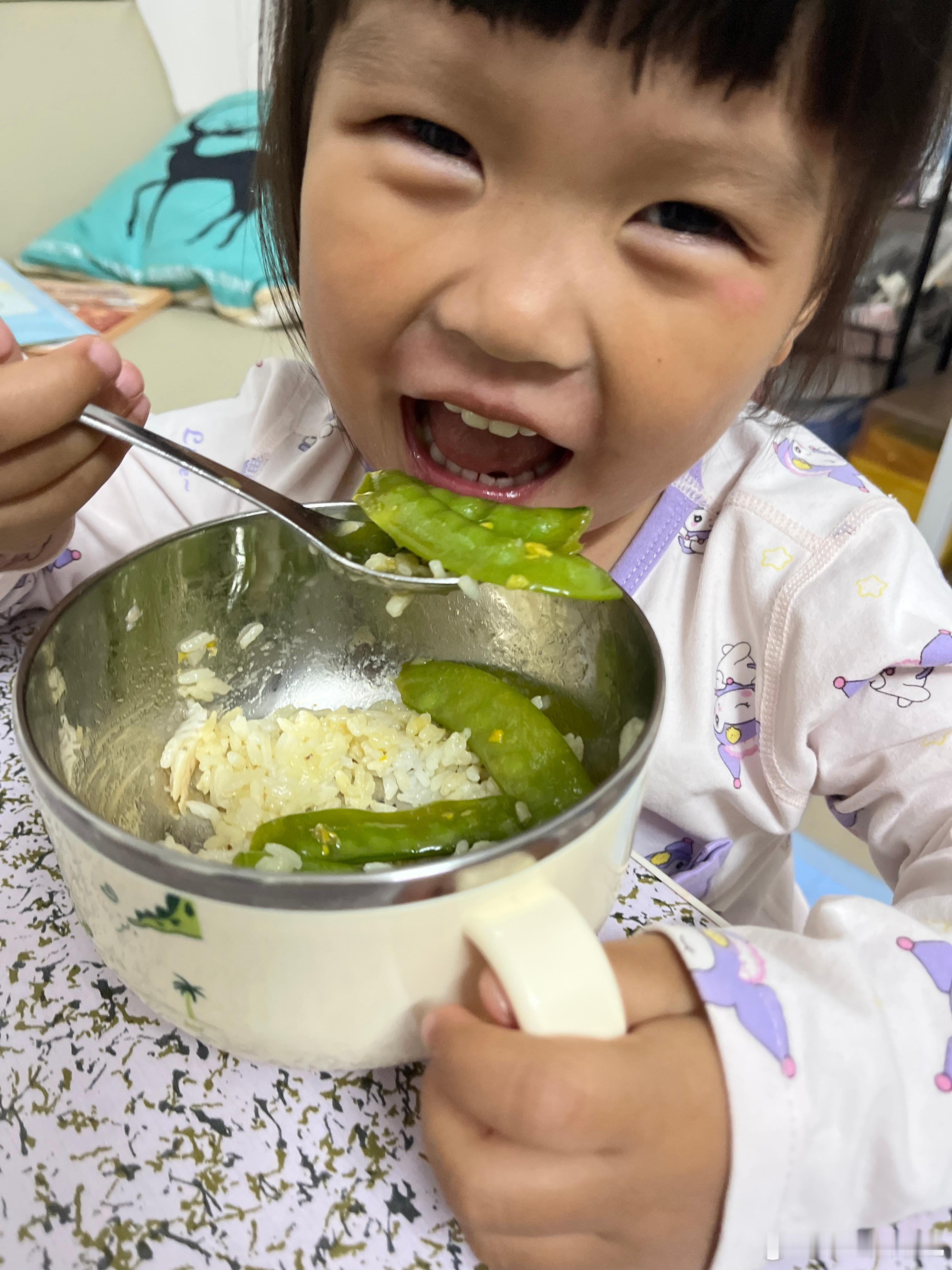 晚饭吃黄骨鱼,中午炒得荷兰豆,给她留了一些。她说不喜欢吃,我吃了一个,表演给她看,好好吃,嘎嘣脆,吃了会变漂亮,后面她就吃了