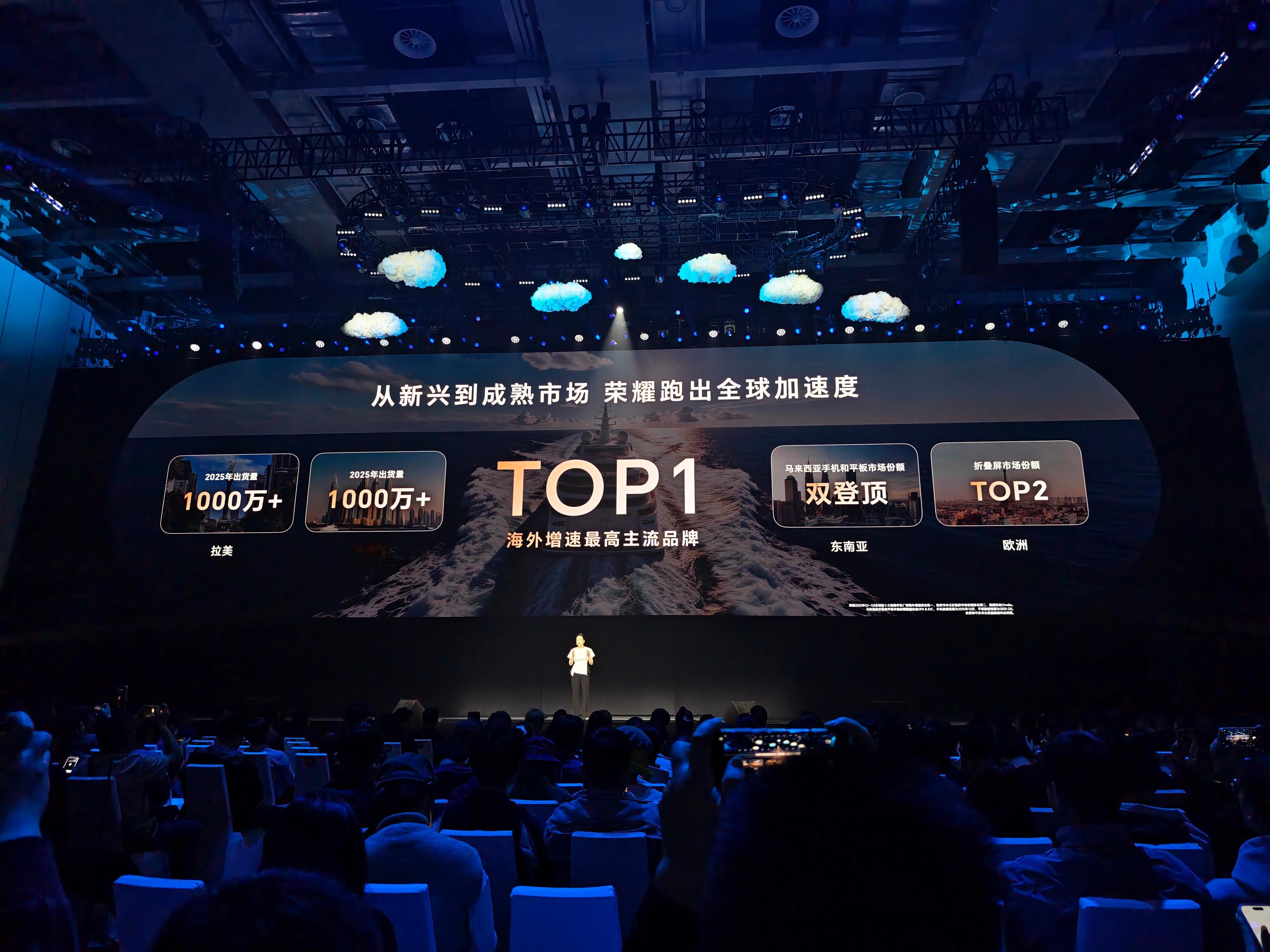 发布会开始,产品力 始终是荣耀最硬的底气。现在荣耀全球拥有2亿用户,去年荣耀是海外增速最高的主流品牌。