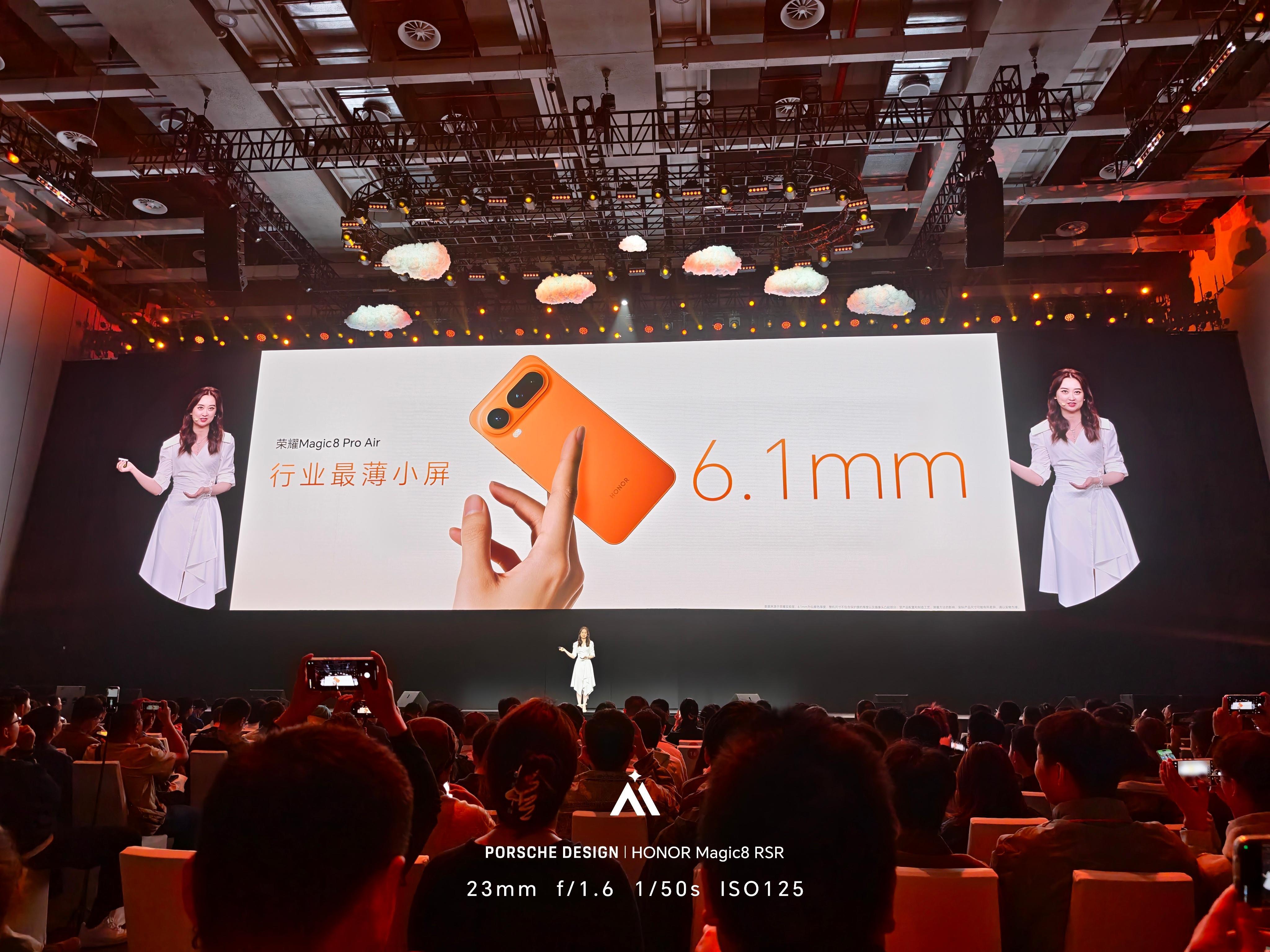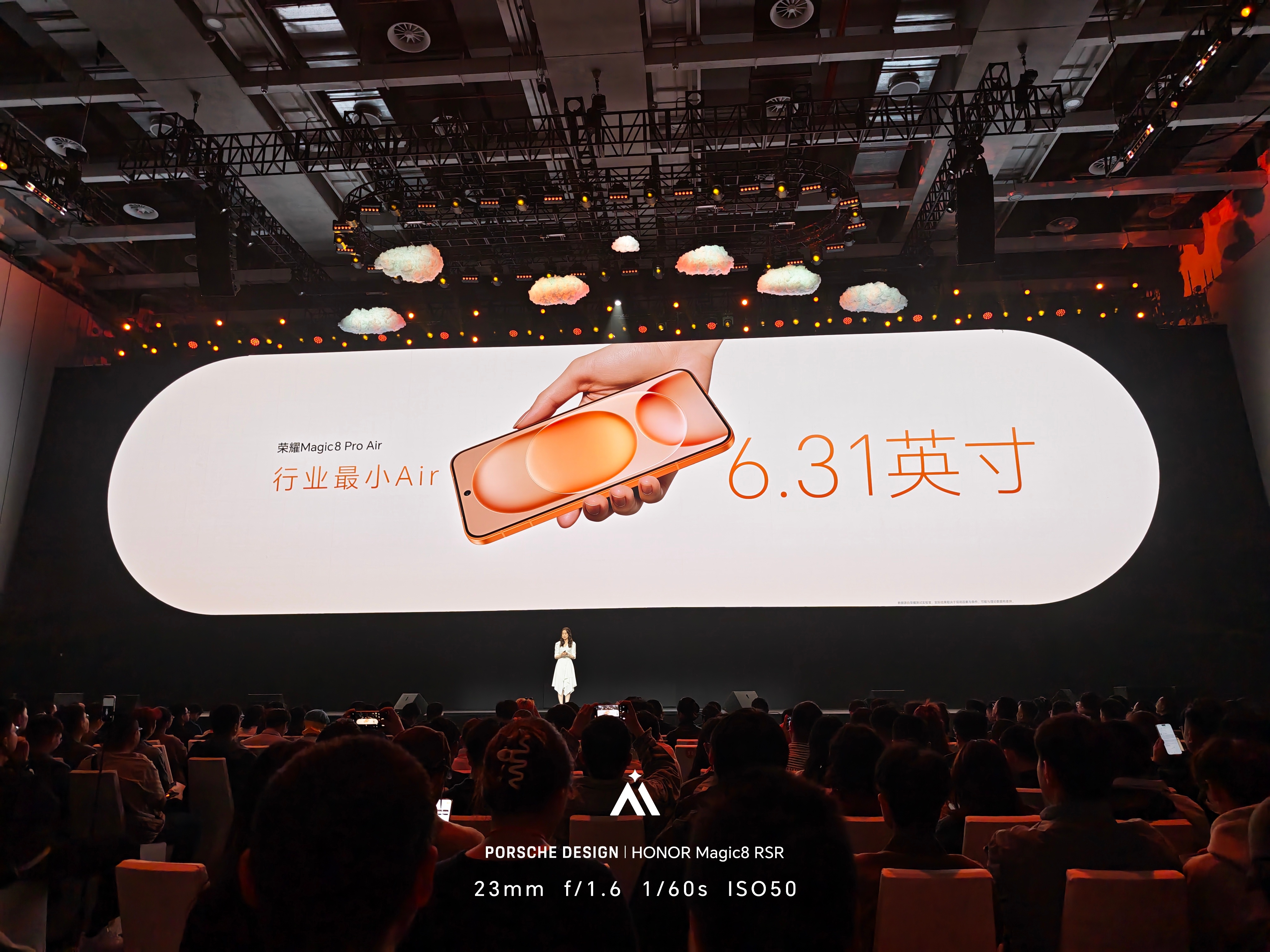 轻 薄 小 Pro,这就是荣耀Magic8 Pro Air荣耀Magic8 Pro Air是年度最轻旗舰手机,仅155g,比iPhone Air还轻10g荣耀Magic8 Pro Air是行业最小Air,屏幕6.31英寸荣耀Magic8 Pro Air是行业最薄小屏,仅6.1mm荣耀Magic8 Pro Air拥有1.08mm四边等窄黑边豪车同款涂装工艺,7涂7烤,有光泽更高级一体化浮岛热压工艺,低调凸起,有颜有实力