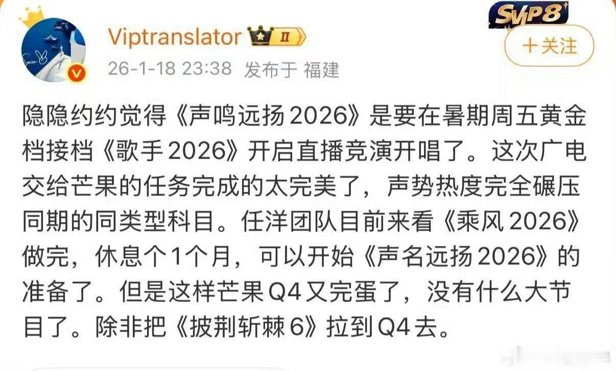 声鸣远扬总冠军内定歌手2026首发网传声鸣远扬 总冠军将直接去《歌手2026》揭