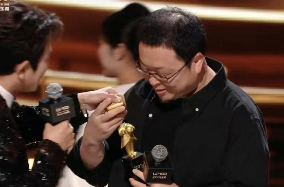 B站给罗永浩颁奖,结果奖杯小金人的脑袋掉了,罗永浩很会来事啊,赶紧把奖杯拼接在一