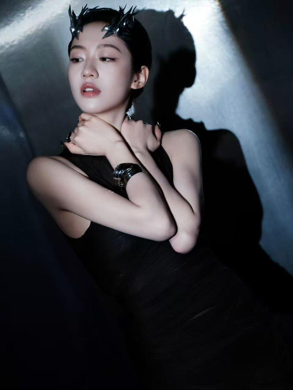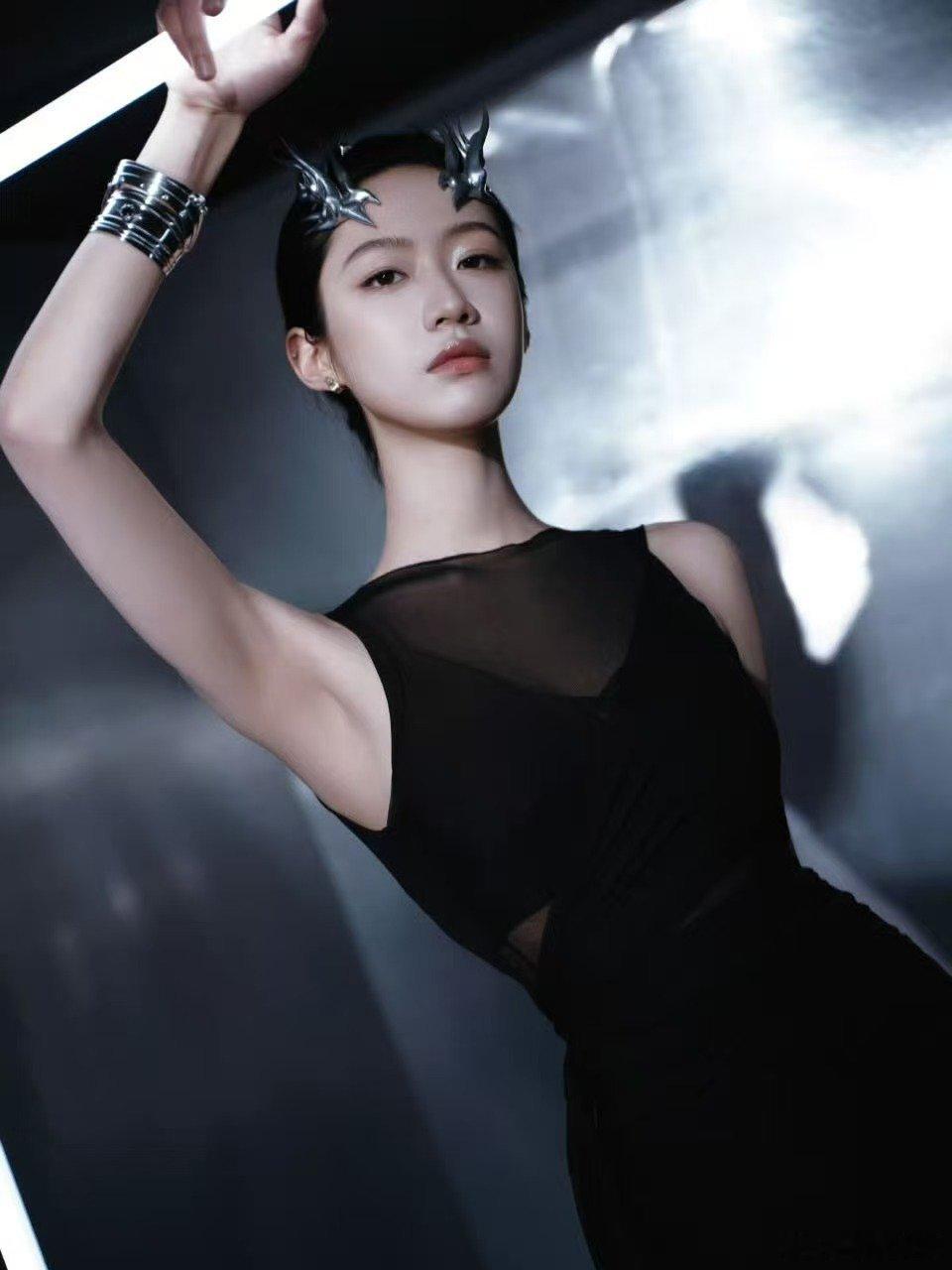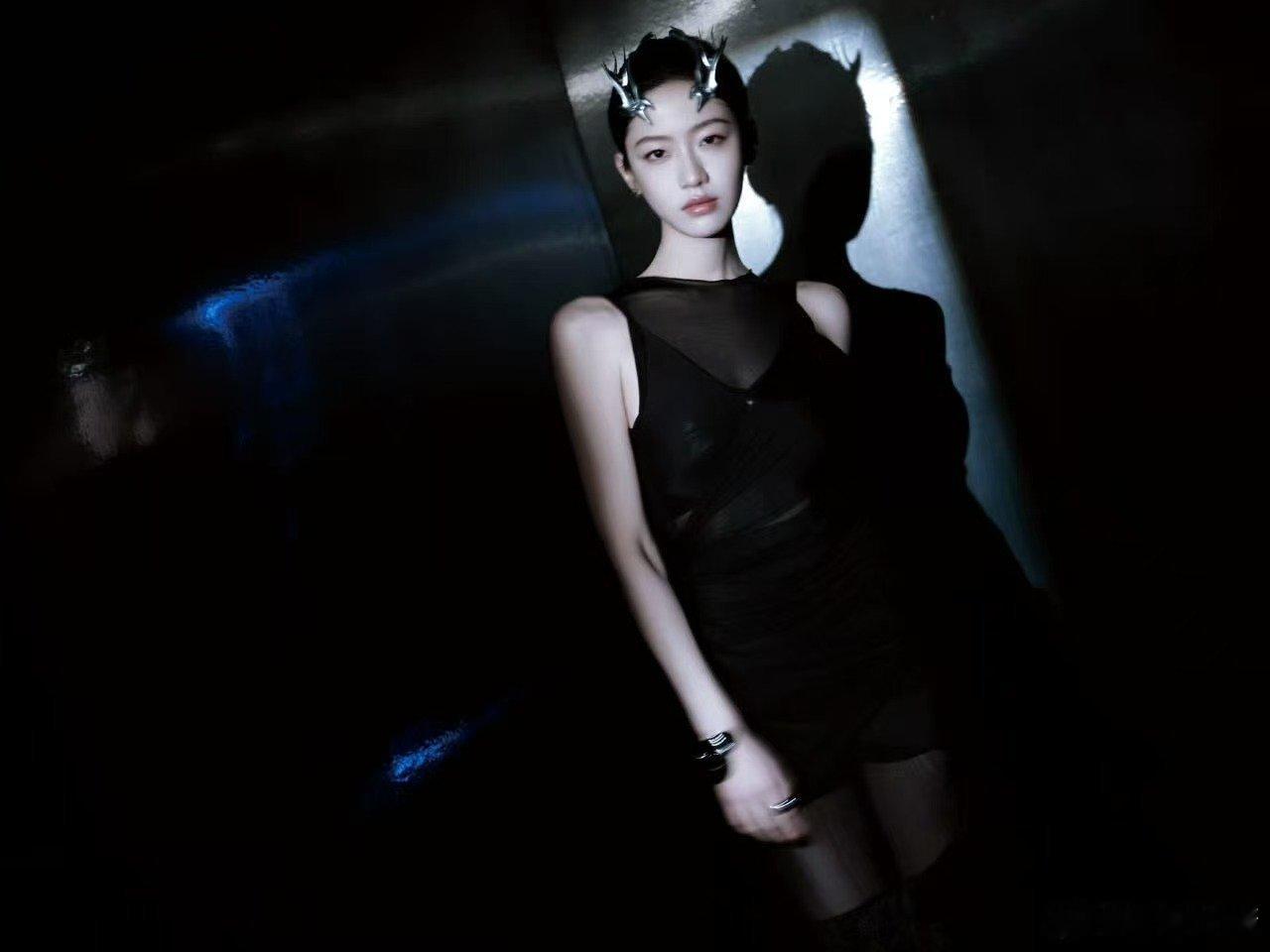 向涵之银角星冠刺破柔光,黑纱如夜流淌过锁骨,是暗夜精灵坠入凡间腕间金属缠绕成星河,指尖轻叩光影,让每个姿态都成不朽诗篇。时尚32周年时尚之夜