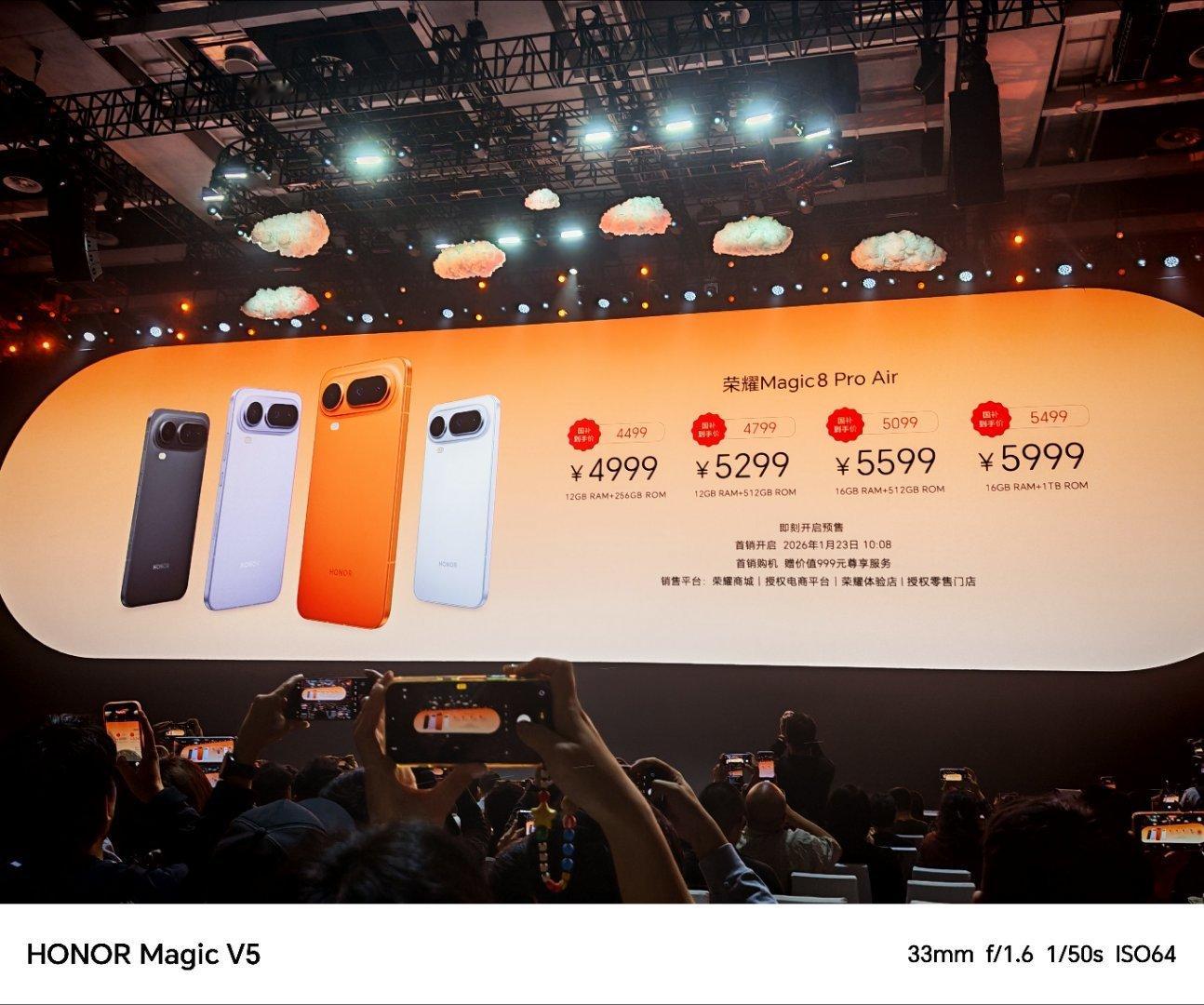 荣耀Magic8 Pro Air的价格出来了,12+256GB 4499元起步,国补后4499元起步;荣耀80 Pro MOLLY 20周年限定版,16+512GB 4499元;荣耀Magic8 RSR保时捷设计7999元起步!各款产品力都很强,特别是内存疯涨得今年,定价居然有点让人意外,价格很香啊!荣耀发布会荣耀Air配置