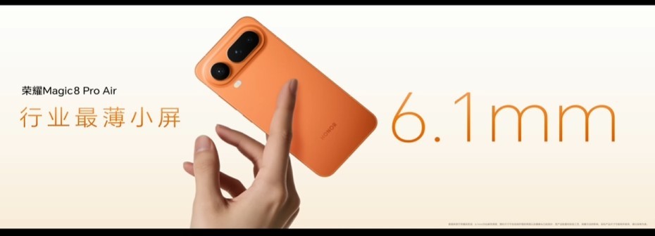 Air手机界来了个真Pro 荣耀发布会上,荣耀Magic8 Pro Air 重磅亮相!6.1mm 超薄机身 + 155g 轻量化设计,单手握持毫无压力,不怕晚上砸脸了!这么轻薄的手机却藏着满配旗舰实力。天玑 9500 芯片 ,性能拉满还不烫手;5500mAh 青海湖电池搭配 80W 快充,终结轻薄机续航焦虑。大底主摄+潜望长焦 ,夜拍也能直出大片,IP68/IP69 双防水更耐用,立体双扬声器,可以说高端旗舰的功能都安排了,足够的Pro!它狠狠打脸 “Air = 功能阉割” 的偏见,靠材料革新与定制元器件,实现 “轻薄不妥协”。用户想要的旗舰配置 + Air 手感,这款全满足,这波闭眼冲!还有提醒大家线下去试试,绝对会非常惊艳!