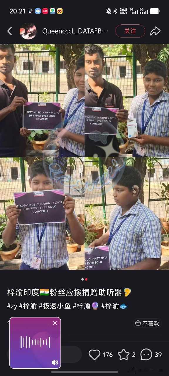 梓渝啊啊啊,海外粉丝还让人好感动啊梓渝印度🇮🇳粉丝应援:捐助了助听器“在梓渝开启个人首场演唱会之际,我们选择将音乐带到最需要它的地方,以此庆祝这一时刻。本次捐助为听障人士捐助助听器,因为每个人都值得感受音乐的魔力。梓渝,首场演唱会快乐!”