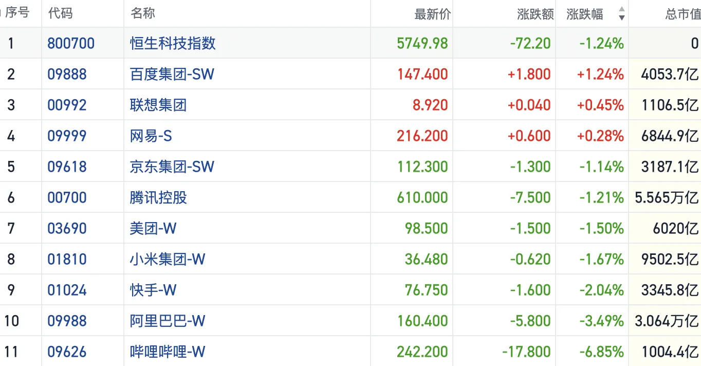 [大型科技股集体弱势恒指转跌向下成交额创今年来新低]