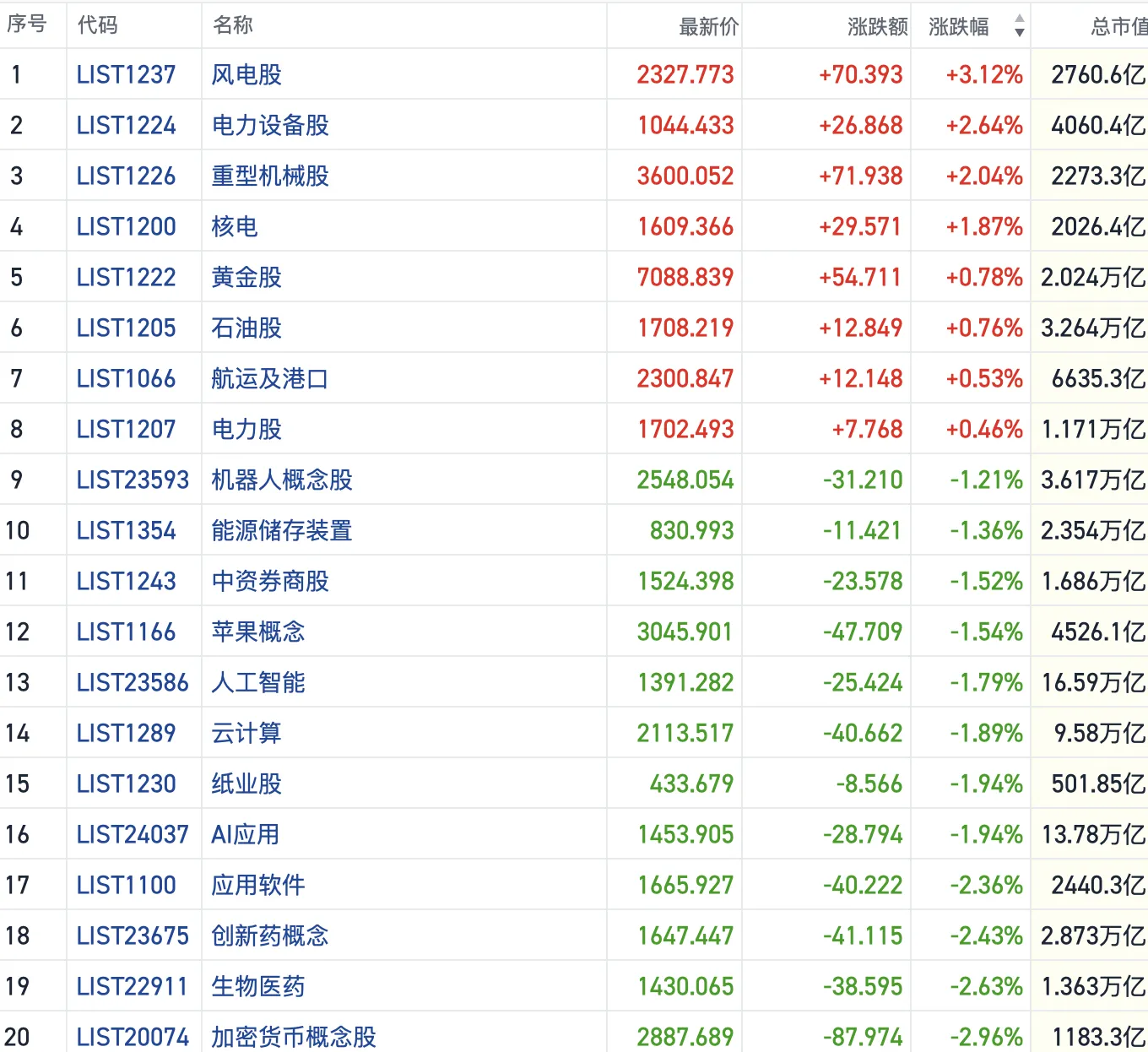 其他方向上,AI应用概念回调加剧,生物医药、有色、金融等板块也从短线高位回落。