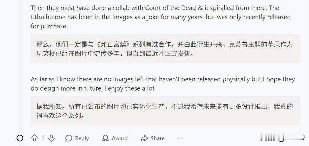 北美玩具大厂 Sideshow 做的树脂苹果玩具摆件,属于“亡灵法庭”系列的一款热门恐怖主题道具复制品,2018年款。正面图我就不放了。总之,真的是玩具,而且是主题玩具,甚至还有克苏鲁主题的。所以你说,美国人啥不知道啊?要是没有这些出圈方法论的提示,你以前看到了,能想象出这在现实中又意味着啥吗?
