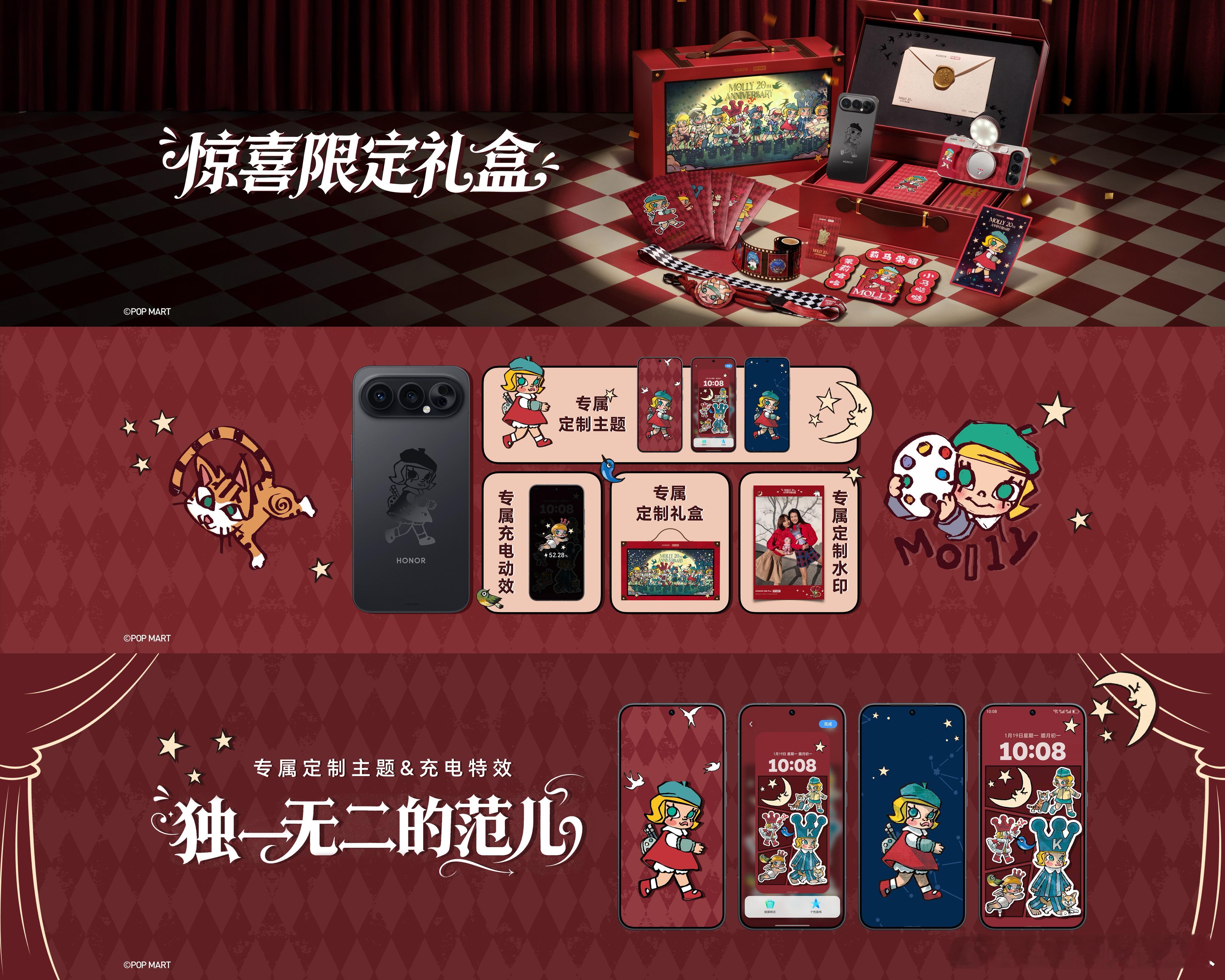 荣耀和泡泡玛特的联名款太懂年轻人了!荣耀500 Pro MOLLY限定版从外观到系统全是惊喜,礼盒的旅行箱造型还能发光,周边也超丰富,春节用这个红包和冰箱贴,仪式感直接拉满~荣耀携手泡泡玛特带来首款潮玩手机
