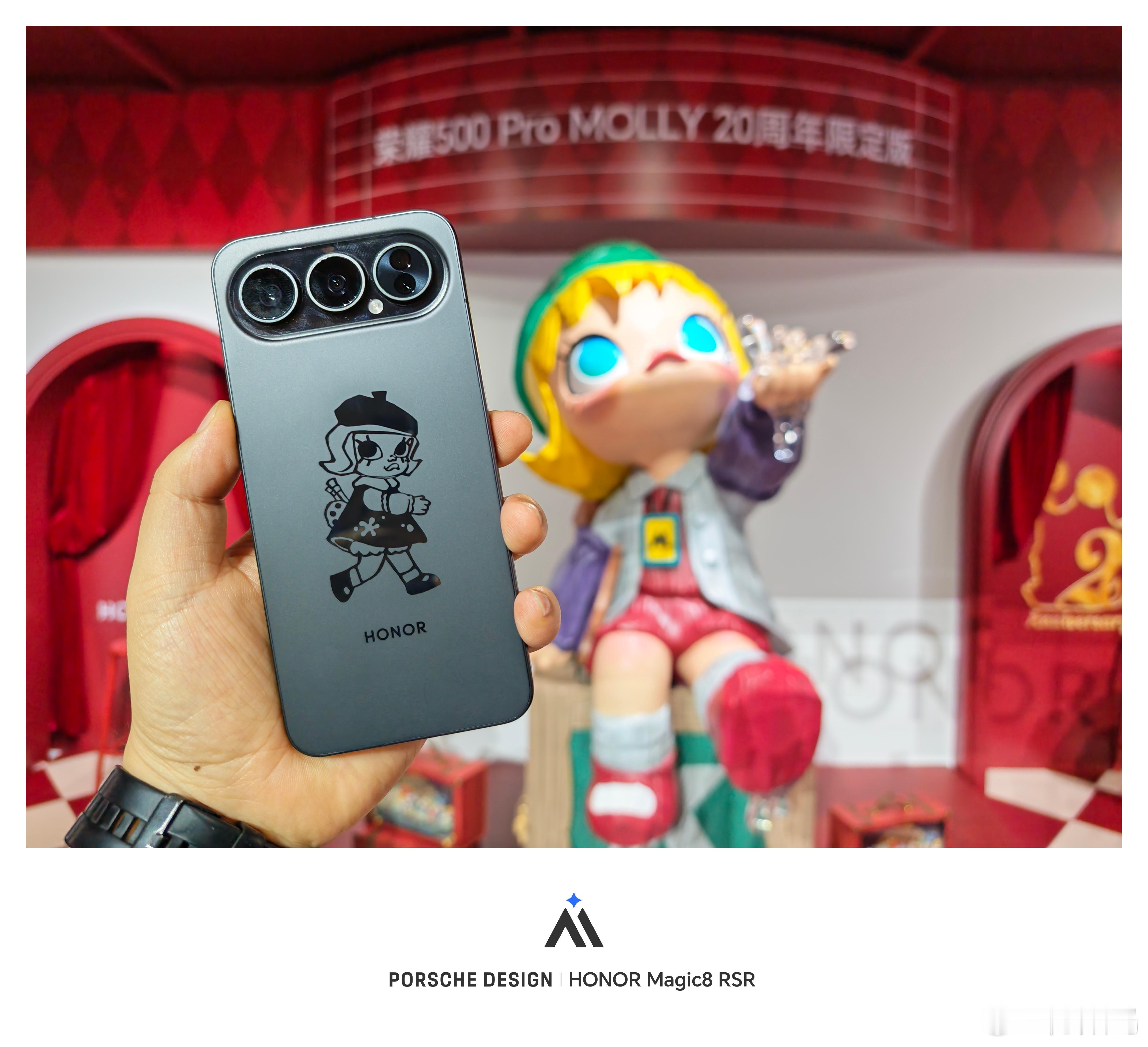 嘻嘻,摸到荣耀500 Pro和泡泡玛特联名的MOLLY 20周年限定版了。 荣耀