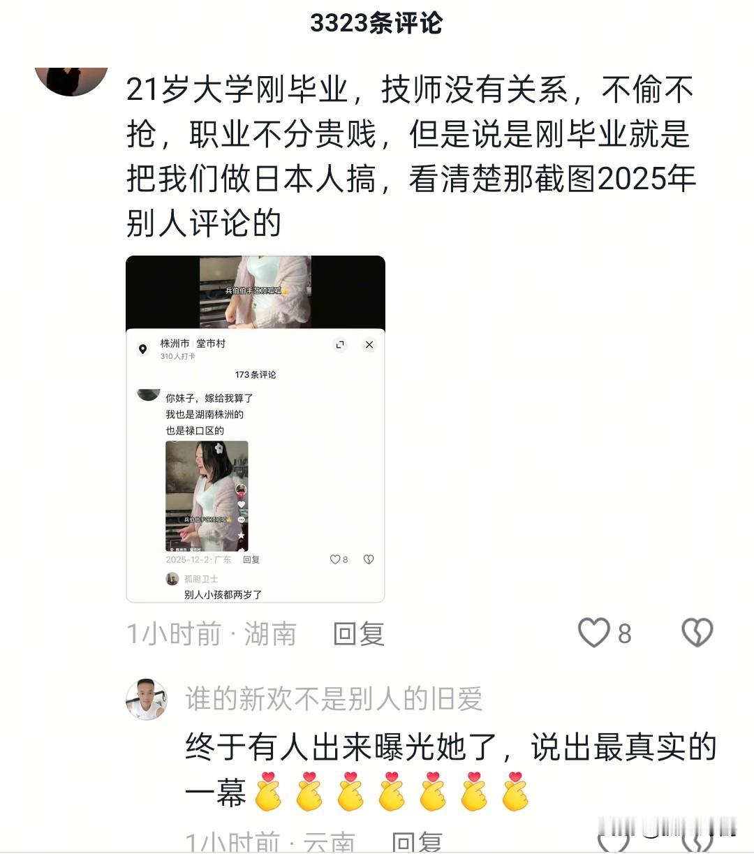 一场杀猪宴让湖南"灿灿"名声尽毁,年龄被质疑,过往技师工作也被扒! 近日,最火的杀猪宴除了“呆呆”,就属“灿灿”,有网友招牌都做好了,1月11日是重庆合川杀猪宴,1月18日是湖南株洲愚人节,为何呢?当然是灿灿二次取消的原因,而且嘴里没有一句实话。 1月15日取消杀猪宴的时候,她哭着伤心欲绝: “我大学刚毕业,没经济来源,没社会阅历,家里场地小,真的办不了。”网友当时还心疼她“太年轻、没经验”。 结果就被扒出,所谓的表哥是她丈夫,举办的场地是婆家,30多岁,有两个娃,这些都是灿灿的老板以及同事发声说的,而且在灿灿的伯伯账号里很多视频都有灿灿出镜,有一个视频写的是: “今天老弟嫂生日,祝她生日快乐。” 所以更加实锤了。而且灿灿确实在一家洗脚店工作的,且工龄有5年,常常拿到头名,老板以及领导都发视频夸赞她,所以网友们在某店账号上能看见灿灿,无论体型还是五官以及酒窝都一样,叫石灿,而且她伯伯网名叫“老石” 其实,广大网友气着从来不是“她的职业”,而是被当猴来回耍 “按摩师靠双手吃饭,堂堂正正,有什么丢人的?”有网友说得直白,“我们气的是她刻意隐瞒、包装人设,把网友的同情当流量密码,把大家的信任当猴耍。” 从杀猪宴的反复取消,到身份的层层谎言,再到捐款的疑似造假,灿灿的每一步都在消耗着互联网的善意 有网友扒出,灿灿晒出的捐款20万截图疑似造假,因为上面显示的收款账户是“株洲市红十字会”,而非宣称的“儿童福利院”,两者分属不同机构,资金用途根本不一样,随后网友就查了一下株洲红十字会,公开信息显示,发现其官方账号因未年检已处于“注销状态”。 所以这一笔20万捐到哪里去了呢? 这场因杀猪宴引起的闹剧,让“灿灿”后悔莫及,这下是真哭了,她不想丢脸,结果因为自己的行为,脸丢到国外了。
