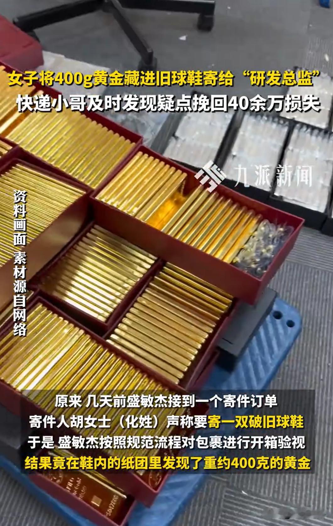 浙江湖州,一女子在快递点寄旧鞋时,快递小哥一掂量,发现鞋子沉得不寻常,伸手一摸,