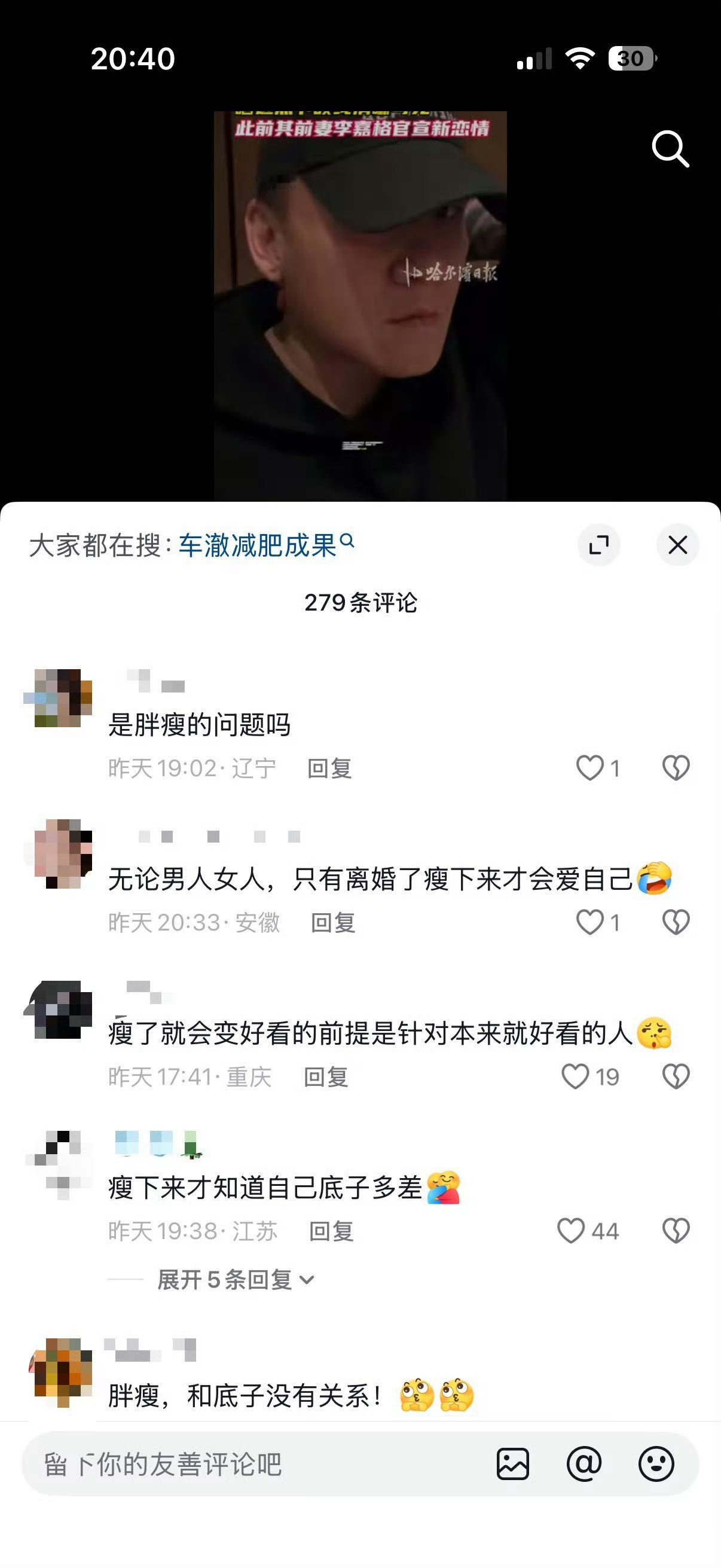 车澈瘦了68斤网友的嘴也太损了吧哈哈哈哈哈,车澈瘦了68斤也太厉害了,就这两个月,离了婚后真没少付出,网友说,瘦了才知道自己底子有多差,瘦了变好看只针对长得好看的人,车澈也不至于吧,他瘦了不比胖的时候好看吗?不过和李嘉格现在的小男友也没法比,年龄就摆在那里了,可是怎么感觉他的风格有点像李嘉格的现男友啊?