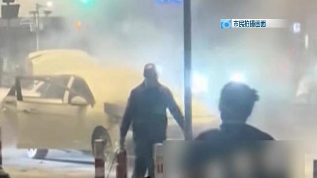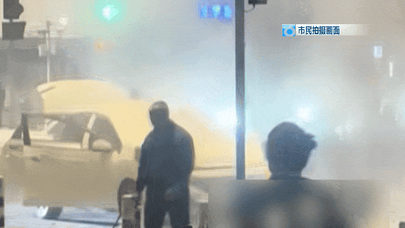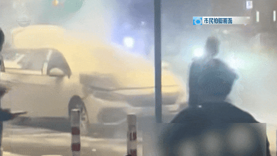 1月14日晚上,一辆新能源汽车行驶至春城路与环城南路交叉口时,引擎盖内突然窜起大量烟雾并燃起明火。