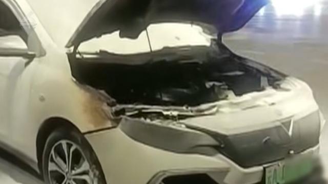 从路过市民拍摄的视频可以看到,白色新能源轿车停靠在路边,整车已被烟雾笼罩,一名男子正提着灭火器施救,车头燃烧后损坏严重,引擎盖内一片狼藉,内部线路及部件大面积焦黑,前保险杠和叶子板区域也有明显的融化和破损。