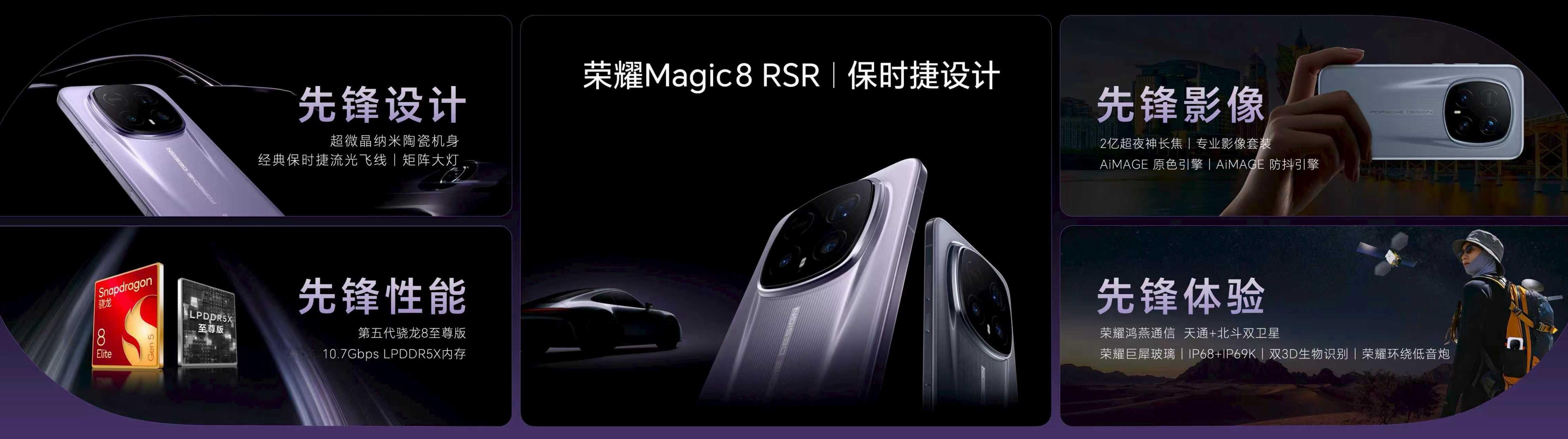 荣耀Magic8RSR保时捷设计影像评测来了~ 经典陶瓷机身回归,带来月光石、板岩灰双色选择,质感与颜值双在线。后置5000万主摄(1/1.3英寸)+5000万超广角+2亿像素长焦三摄组合,其中长焦镜头拥有1/1.4英寸大底与3.7倍光变能力,还搭配影像套装及2.35倍增距镜。第五代骁龙8至尊版处理器,最高配备24GB超大运存,更支持北斗卫星短信与天通卫星通信,极端环境下也能保持联系,你们觉得如何呢?