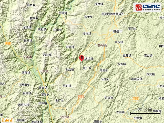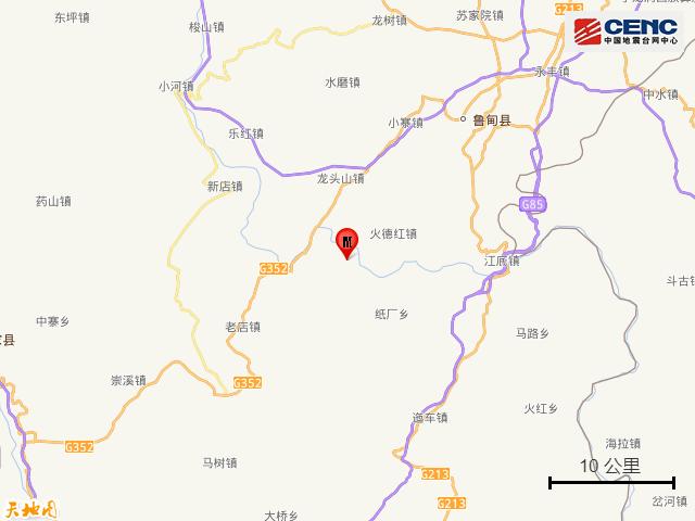 附近村镇:本次地震周边5公里内的村庄有韩家坪子、树茶、圆塘子、红石岩村、鱼塘坪子、老寨、杨奋田、大水井、王家坪子、红箐村,20公里内的乡镇有包谷垴乡、火德红镇、老店镇、龙头山镇、铅厂乡、新店镇、大水井乡。