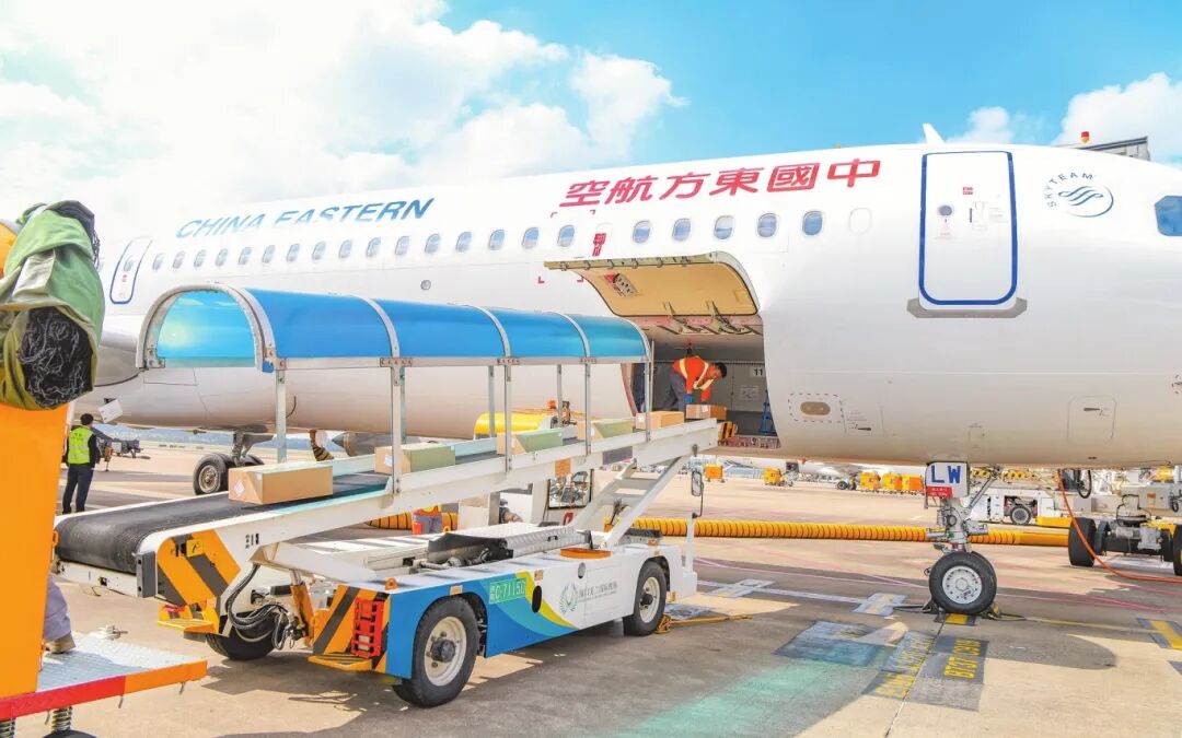 2025年12月18日,在海口美兰机场,一批海关监管“二线”内销加工增值免关税货物正在运上飞机。记者苏弼坤摄