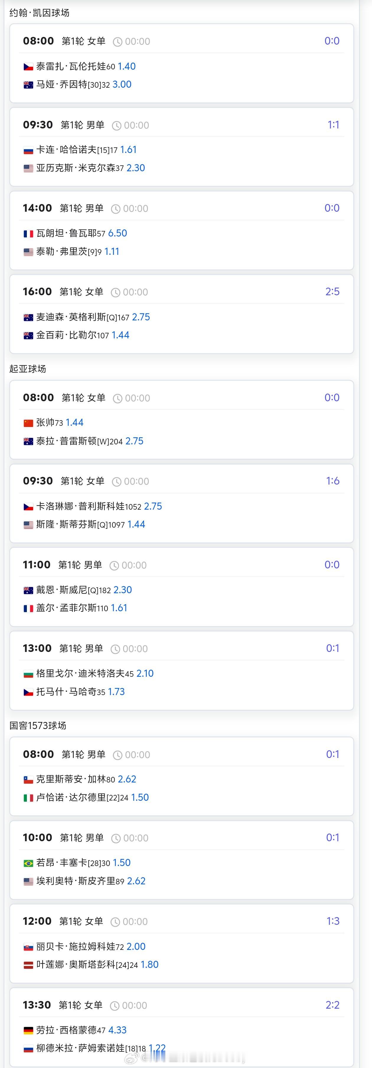 中国网球波比台bbtv (1月20日)澳网赛程如下:⏰ 08:00女单 张帅 🇨🇳 vs 普雷斯顿 🇦🇺 (起亚球场)女单 费尔南德斯 🇨🇦 vs 曾丽美 🇮🇩 (澳新银行球场)⏰ 08:30女单 凯斯 🇺🇸 vs 奥利尼科娃 🇺🇦 (罗德·拉沃尔中心球场)⏰ 10:00女单 王欣瑜 🇨🇳 vs 卡列尼娜 🇺🇦 (7号球场)女单 卡普利斯科娃 🇨🇿 vs 斯蒂芬斯 🇺🇸 (起亚球场)⏰ 11:00女单 莱巴金娜 🇰🇿 vs 尤万 🇸🇮 (玛格丽特·考特球场)⏰ 12:00男单 吴易昺 🇨🇳 vs 纳尔迪 🇮🇹 (7号球场)⏰ 14:00女单 奥斯塔彭科 🇱🇻 vs 施拉姆科娃 🇸🇰 (国窖1573球场)⏰ 16:00女单 本西奇 🇨🇭 vs 博尔特 🇬🇧 (玛格丽特·考特球场)男单 辛纳 🇮🇹 vs 加斯东 🇫🇷 (罗德·拉沃尔球场)⏰ 19:00女单 大阪直美 🇯🇵 vs 鲁季奇 🇭🇷 (罗德·拉沃尔中心球场)一起为中国选手加油!👏澳网2026 这很澳网