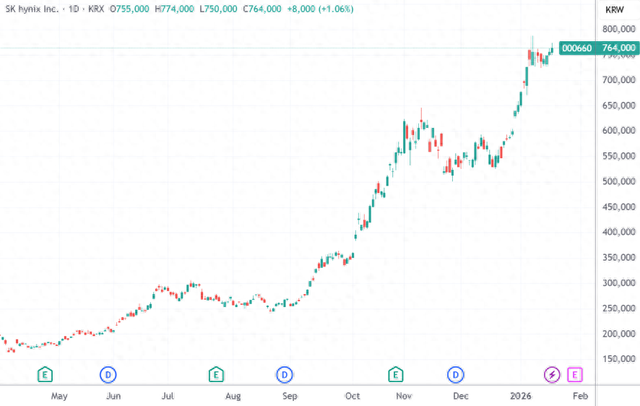 作为传统存储巨头,SK海力士去年股价暴涨274%,在去年9月底至今的存储暴涨行情中更是翻了3倍。