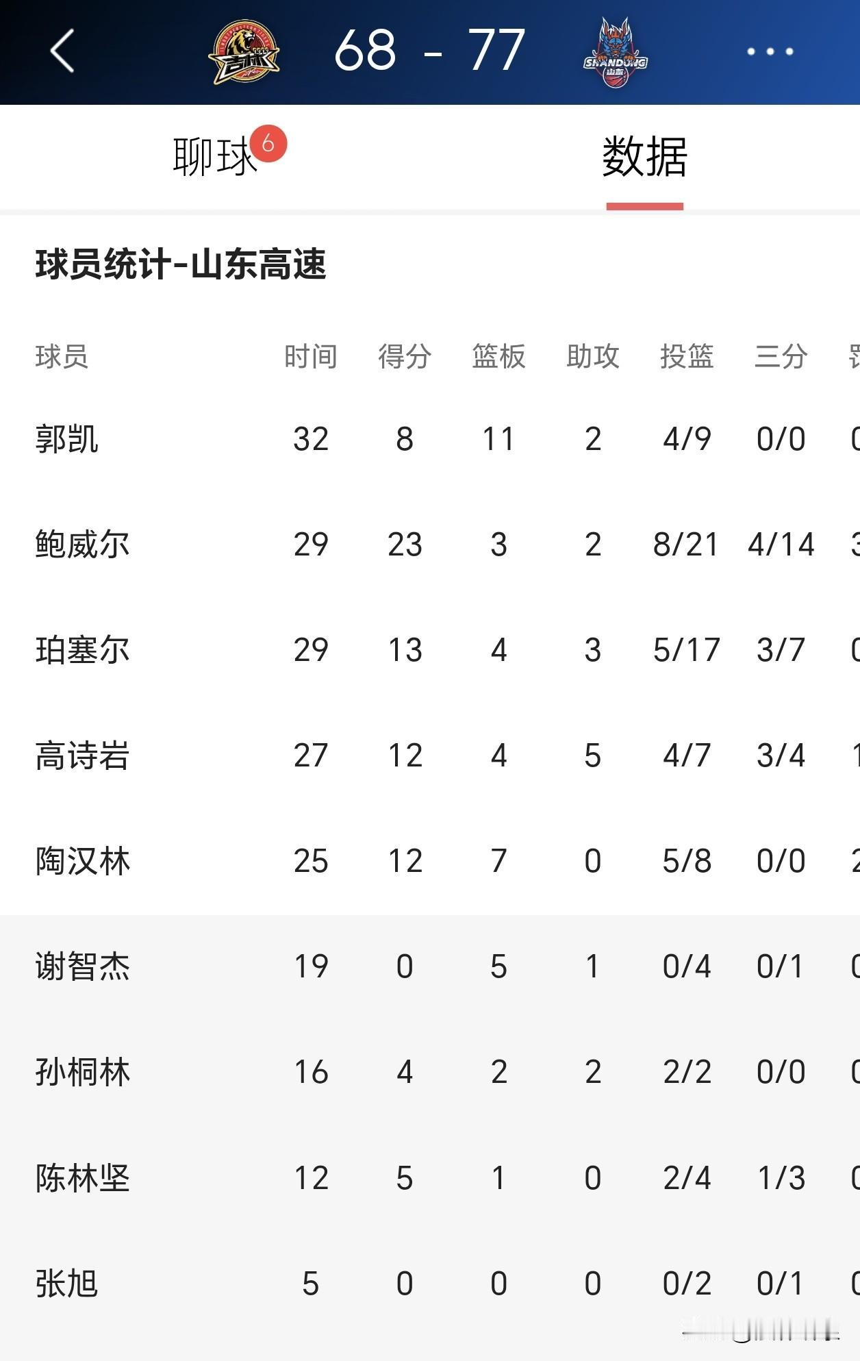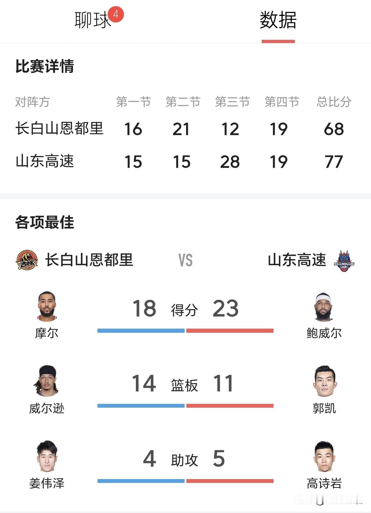 拒绝连败!山东残阵客场擒吉林,这比赛看得人一身汗 上一场憾负江苏,山东男篮紧接着就北上长春,挑战吉林队。缺兵少将成了大问题——陈培东和克里斯双双因感冒高挂免战牌,好在郭凯病愈复出 比赛开局令人揪心。山东全队手感像长春的天气一样寒冷,首节全队只得15分,被吉林队压着1分进入次节。吉林这边打得顺风顺水,,半场结束时,山东已经以30:37落后,主场作战的吉林队似乎看到了胜利的曙光。 下半场风云突变,山东队在第三节大梦初醒!单节轰出一波28:12的冲击波,瞬间扭转了局势。末节吉林队疯狂反扑,姜伟泽命中超难度三分试图续命,但山东众将顶住了压力,将领先守到了最后,客场打到吉林东北虎,有惊无险地带走胜利。 球员数据一览: 山东队鲍威尔砍下全队最高的23分,珀塞尔13分,高诗岩与陶汉林各得12分。病愈归来的郭凯堪称幕后英雄,虽然只得8分,但狂揽11个篮板,立下大功。 吉林队方面,摩尔发挥出色,看砍下18分7篮板3助攻;姜伟泽得到17分4篮板4助攻;威尔逊贡献10分14篮板。盖利表现一般,拿下8分3篮板。, 这场胜利,对缺兵少将的山东队来说非常难得,体现了球队的调整能力和韧性,值得点赞[赞] 山东男篮,继续加油💪 !