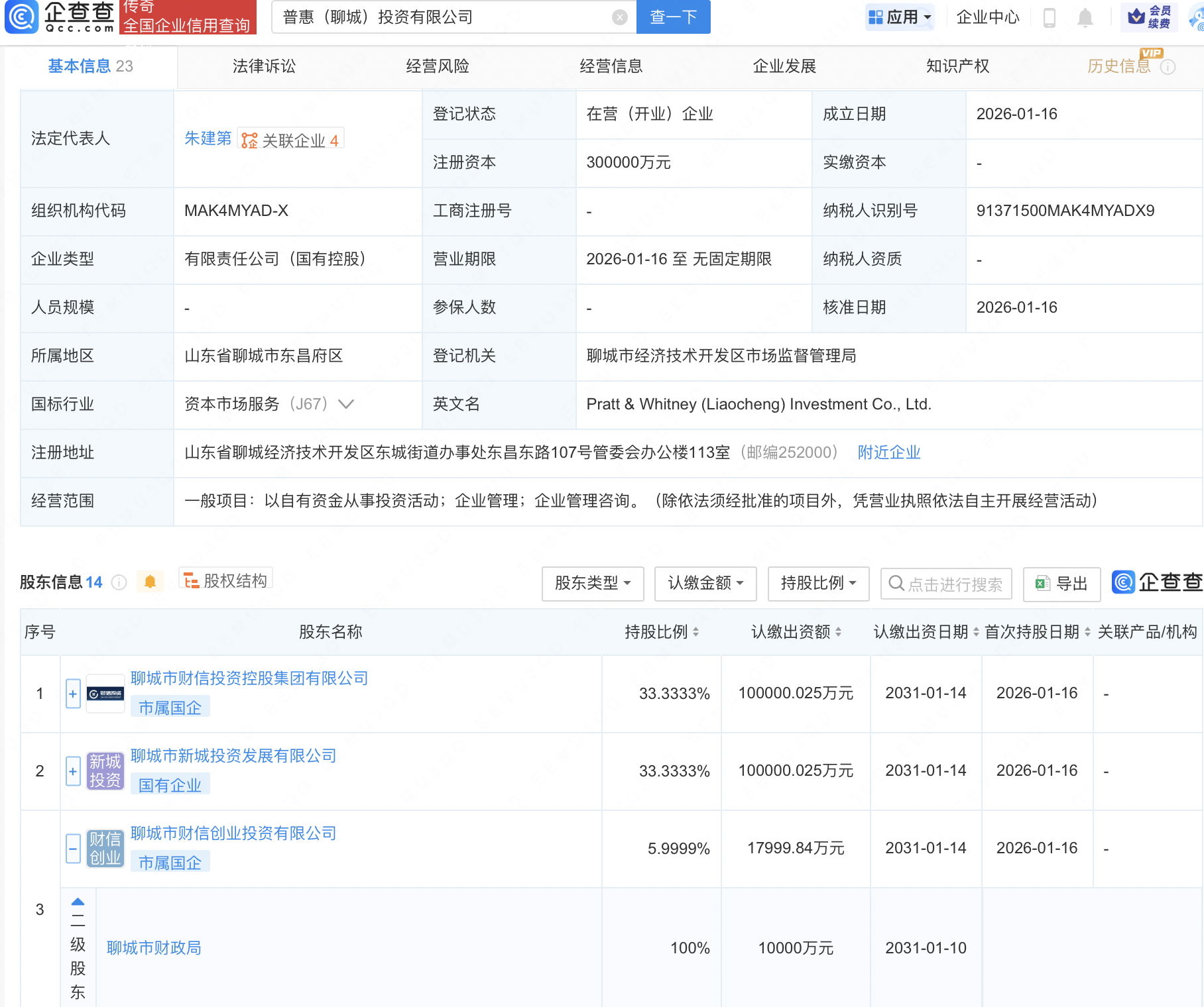 企查查APP显示,近日,普惠(聊城)投资有限公司成立,注册资本30亿元,经营范围包含:以自有资金从事投资活动;企业管理;企业管理咨询。企查查股权穿透显示,该公司由聊城市财信投资控股集团有限公司、聊城市财信创业投资有限公司等共同持股。