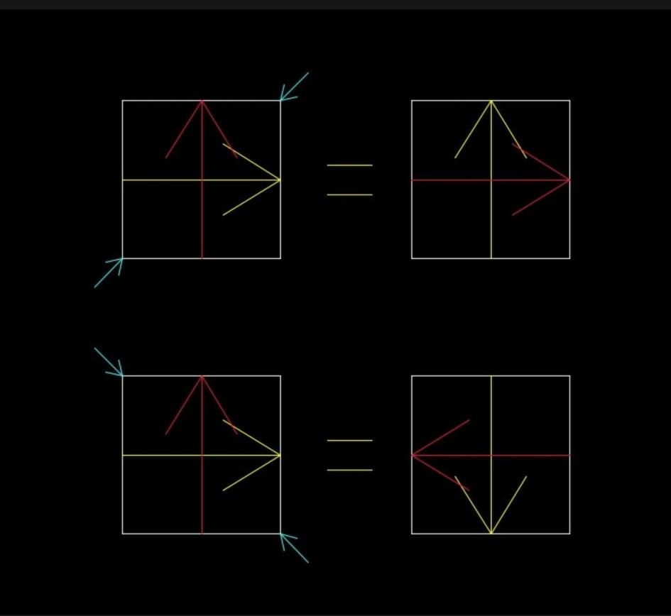 陕西,一爸爸与女儿做游戏,输了的就洗碗一个月。于是爸爸拿出一个正方形纸壳,并在纸壳正反面都画上一个箭头,只要翻转纸壳后,箭头指谁,谁就洗碗。可见,爸爸右手拿着纸壳做演示时,只需反转纸壳,这箭头就会调转方向指向对方,女儿通过验纸壳后,也觉得很简单没问题。可游戏开始,爸爸将纸壳换到左手,无论女儿说翻转纸壳多少次,这箭头始终指向女儿方向,女儿也是被爸爸手中的纸壳“忽悠”得一脸不可思议。 而这看似神奇的一幕,还是被评论万能的网友们给详细破解了。有网友表示:就是手夹的角有问题,换了一只手也换夹角。其实就是正反两面是两个互相垂直的箭头,左右手转的时候,更换了对角线旋转轴,卡片要做成正方形才有迷惑性哦。 也有网友表示:对!轴心不一样,一个是对称轴,一个是非对称轴,正反面的图案的箭头方向是交叉的,呈90度角,所以一还手,这反转箭头所指的方向就不一样了。 还有网友表示:纸壳没有问题,全靠手法。好比你拿一支笔,笔尖朝向前方。当你前后旋转时,笔尖就方向相反。但是你左右旋转时,笔尖就永远都朝向前方。随便拿一个东西,按照他的方式旋转,你就知道为什么。 不得不说,果然姜还是老的辣,看似随机又简单的公平对决,结果女儿却被爸爸的一个生活小智慧给忽悠懵圈了。如果还不明白爸爸“忽悠”原理的,请看图二。 话说回来,这个趣味小比拼是真好,不但瞬间把平淡小日子变得生动有趣了,还活跃了家庭氛围,更是让孩子既干了家务又动了脑子,可谓是一举多得啊!挺好!