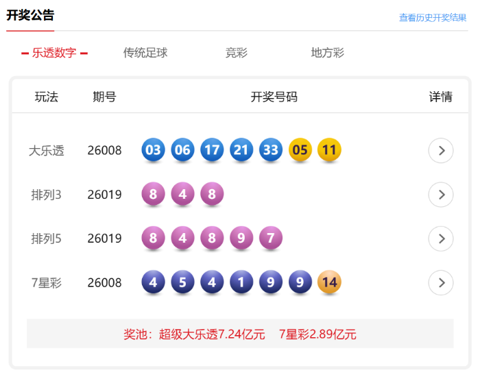 大乐透第26008期开奖结果揭晓,前区号码为03、06、17、21、33,后区则